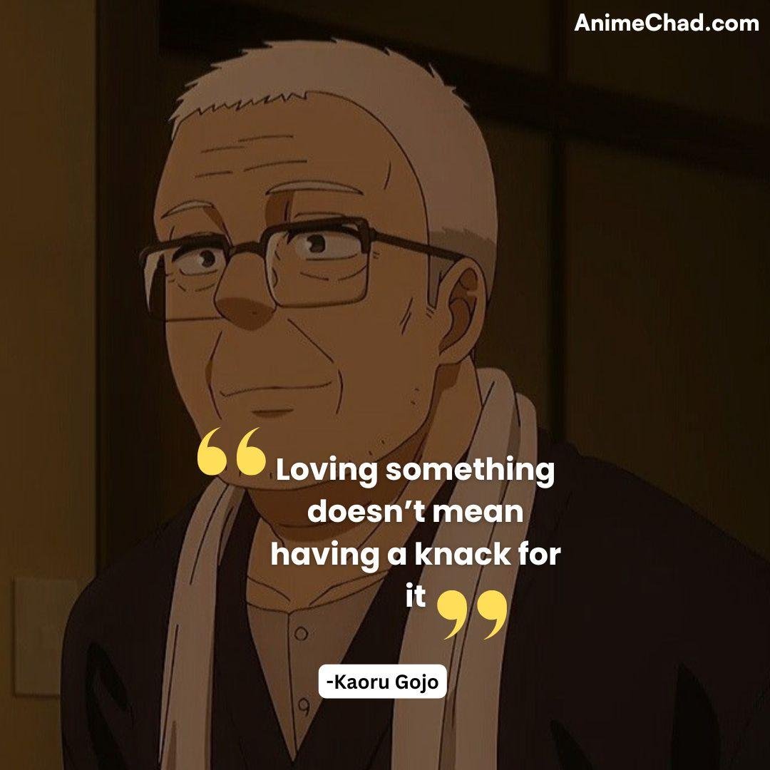 Gojo’s grandfather reframes passion as effort over talent, shaping Hotaru’s approach to relationships.