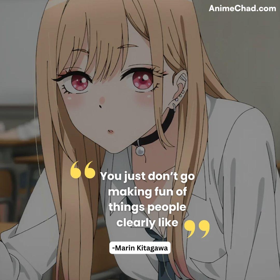 Marin defends Hotaru’s hobbies, establishing the series’ rejection of societal judgment toward unconventional passions.