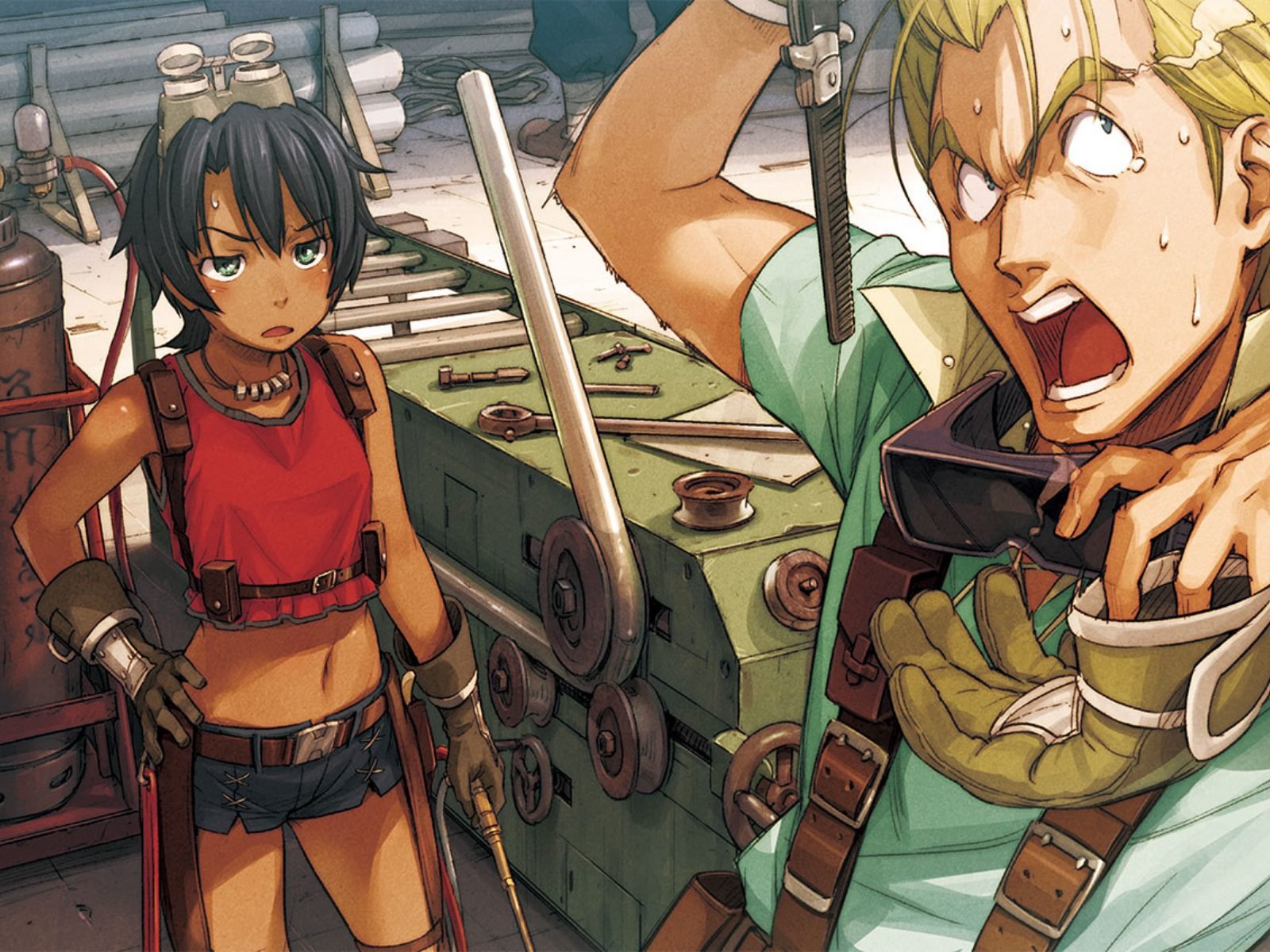 Akiyuki gains shape-shifting powers during a terrorist attack, joining a postal airship crew to control his abilities amid interstellar war.