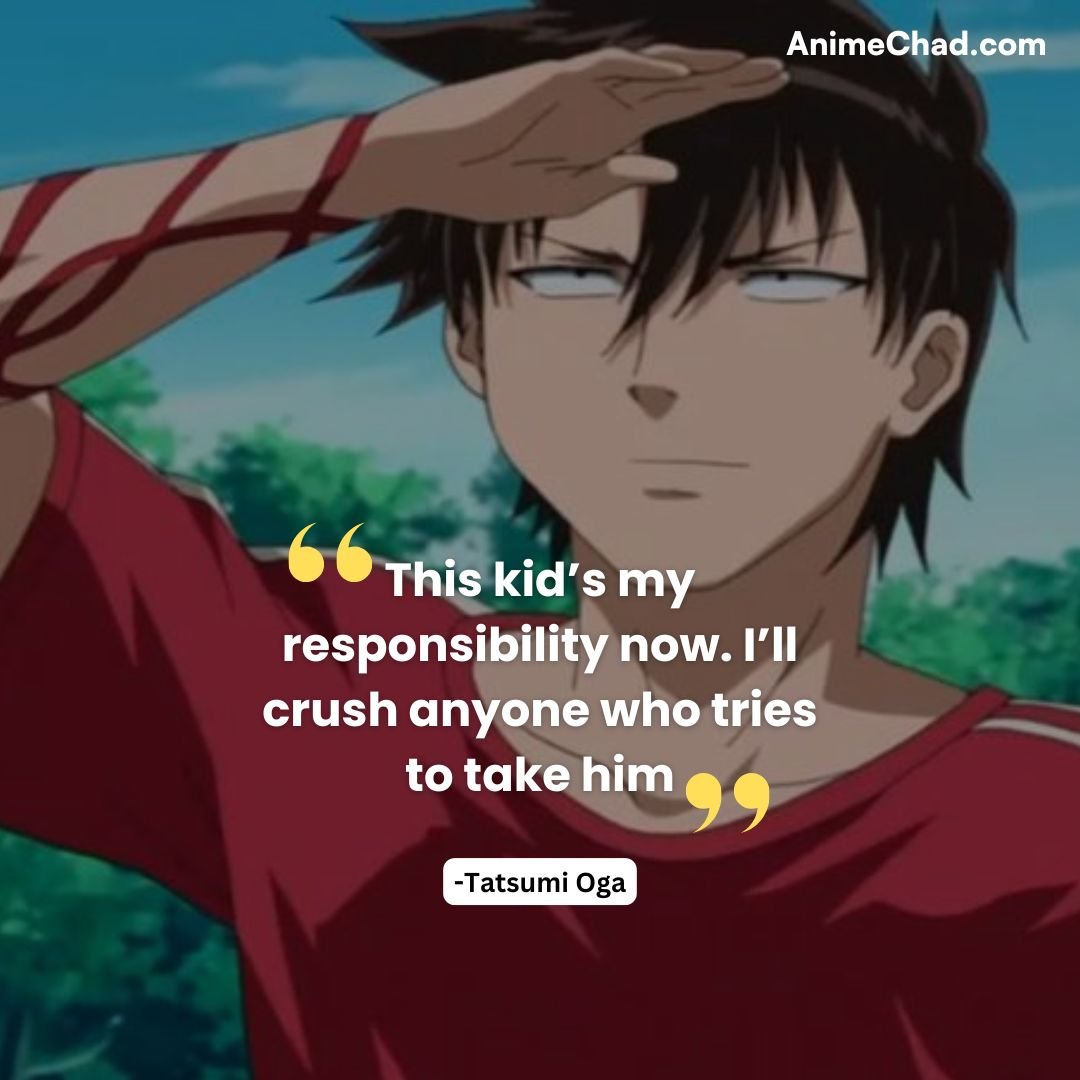 This collection captures quotes that highlight Oga’s growth from reckless fighter to responsible guardian, balancing the series’ humor and gritty determination.
