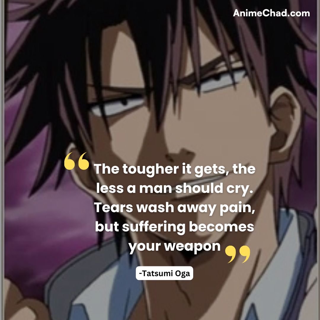 Establishes Oga’s tough-love philosophy during his clash with Kanzaki, rejecting vulnerability in favor of resilience.