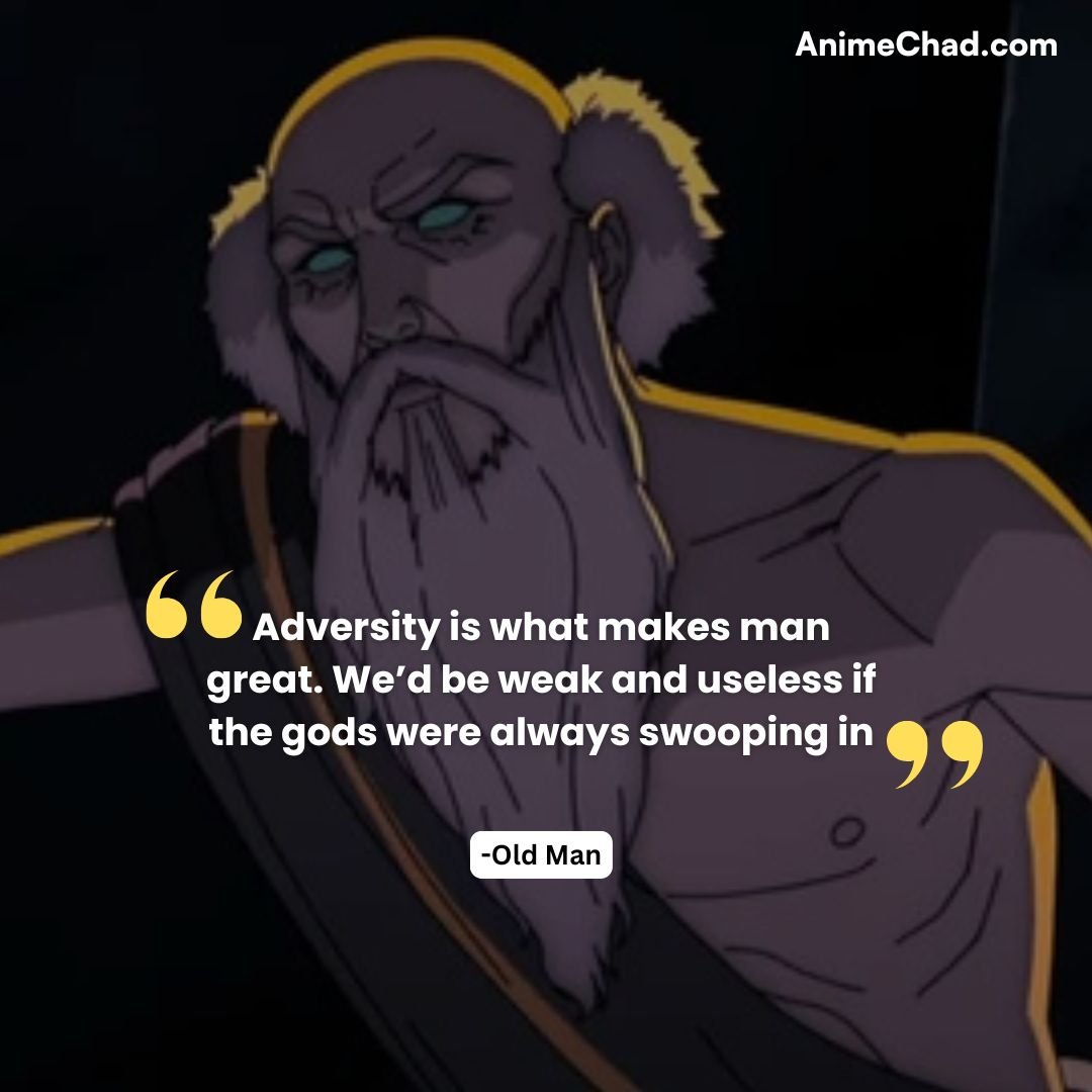 Adversity is what makes man great. We’d be weak and useless if the gods were always swooping in