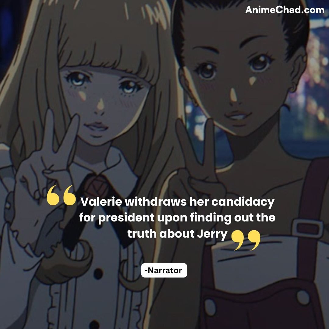 Valerie withdraws her candidacy for president upon finding out the truth about Jerry