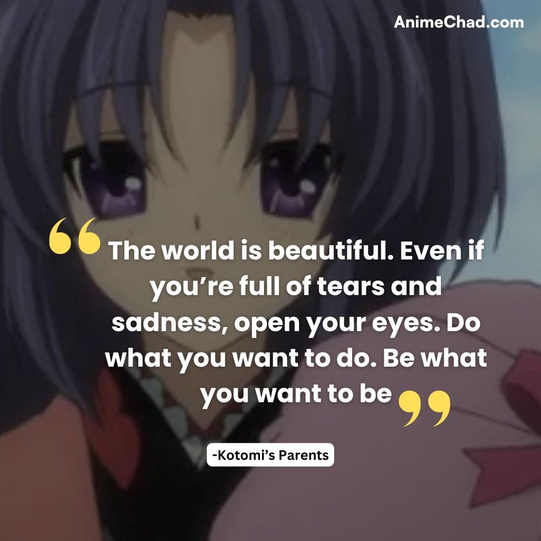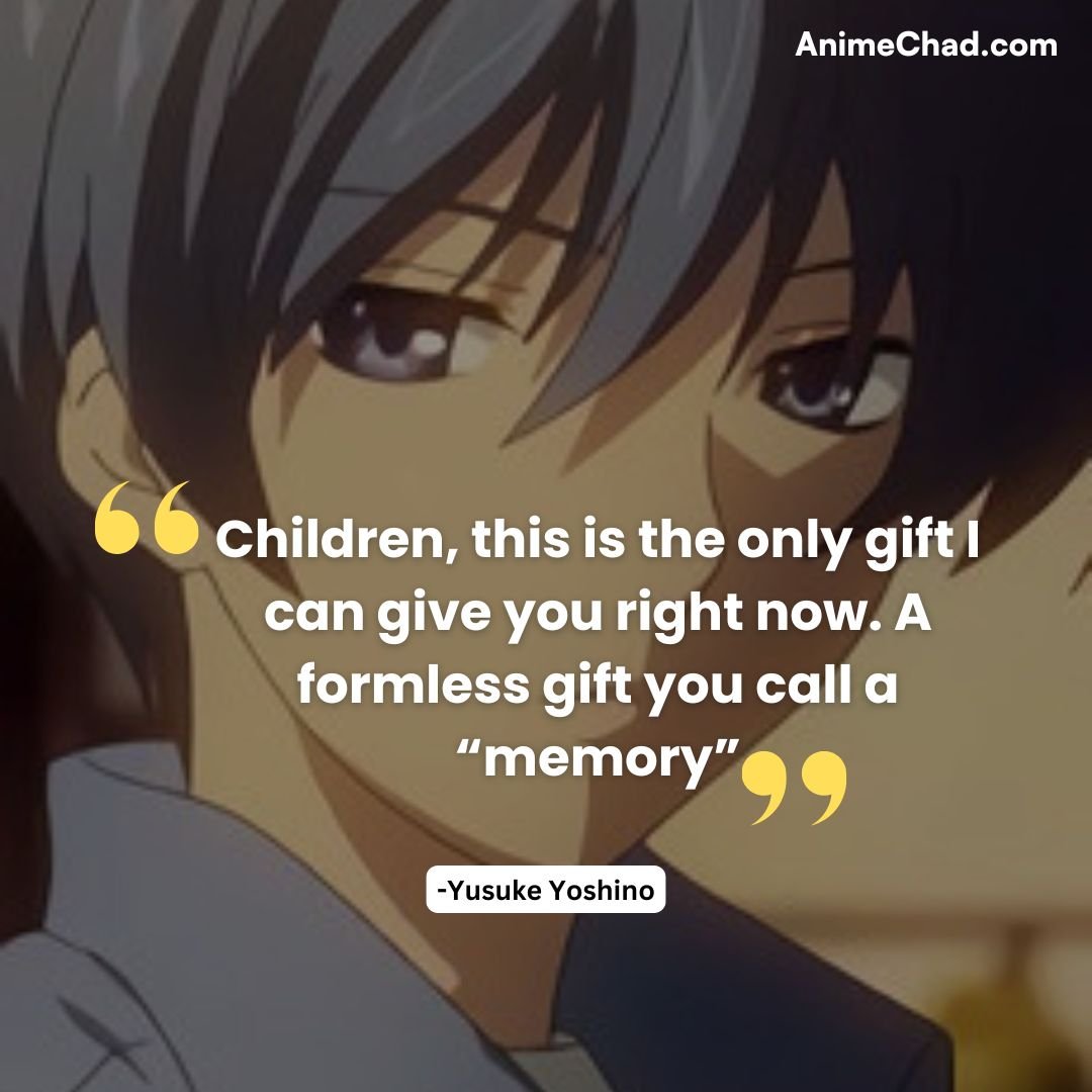 These quotes capture the spirit of Clannad—its pain, hope, and the transformative power of love and family through life’s trials.