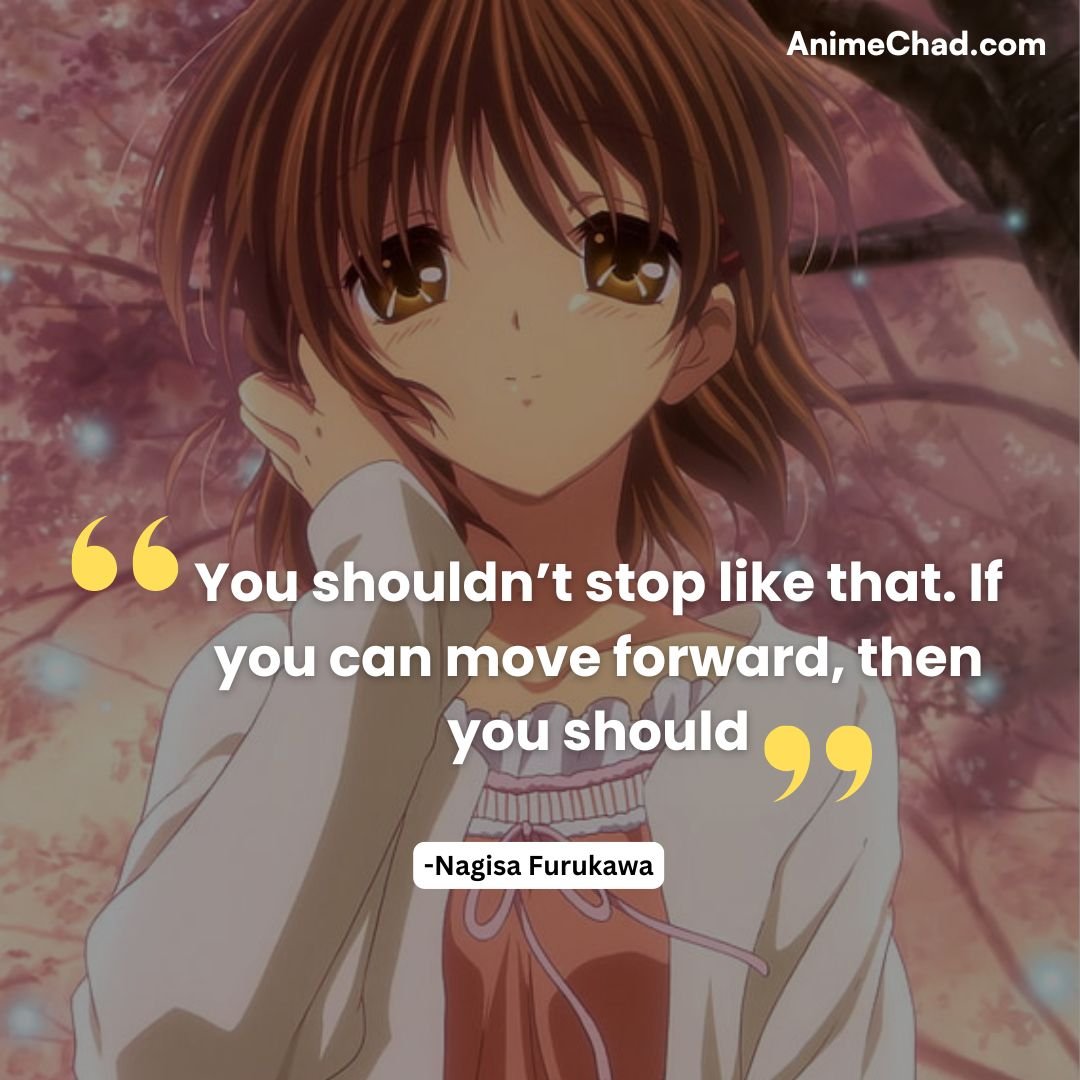 Nagisa’s encouragement to Tomoya reflects her belief in perseverance and growth.