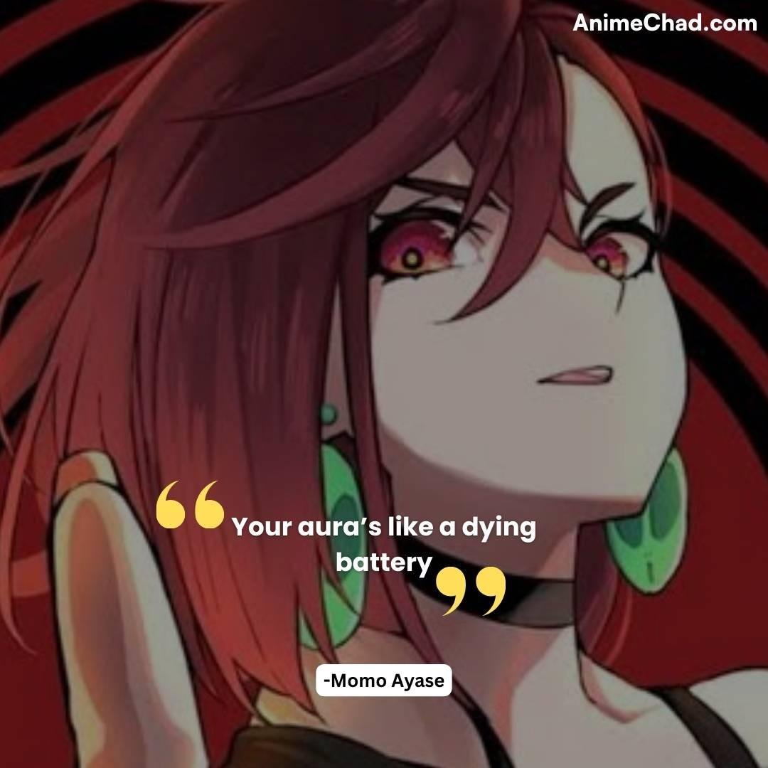 Momo’s aggressive dismissal of Okarun’s alien theories establishes their fiery dynamic and her no-nonsense attitude.