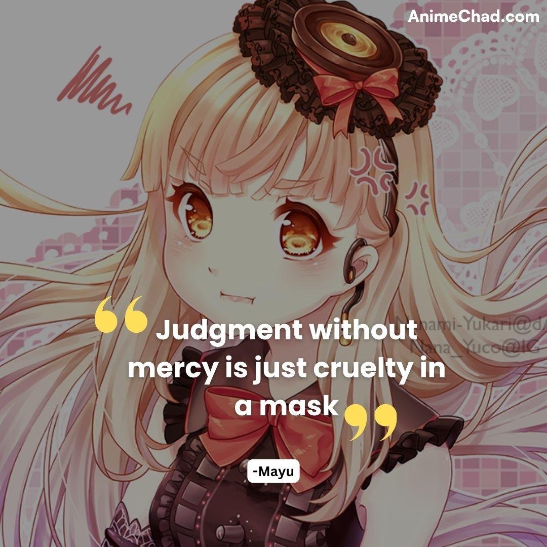 Context: Mayu critiques the arbiters’ cold methodology.