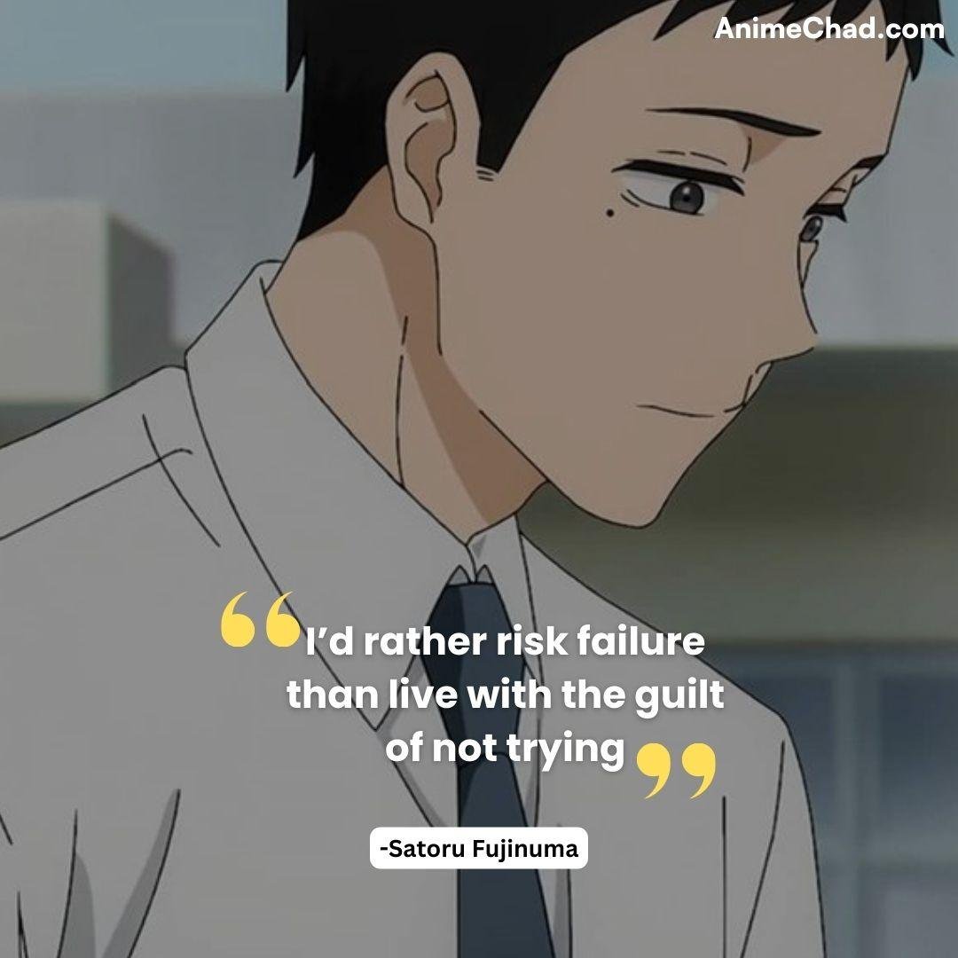 Context: Satoru’s pragmatic philosophy, focusing on present action over regret.