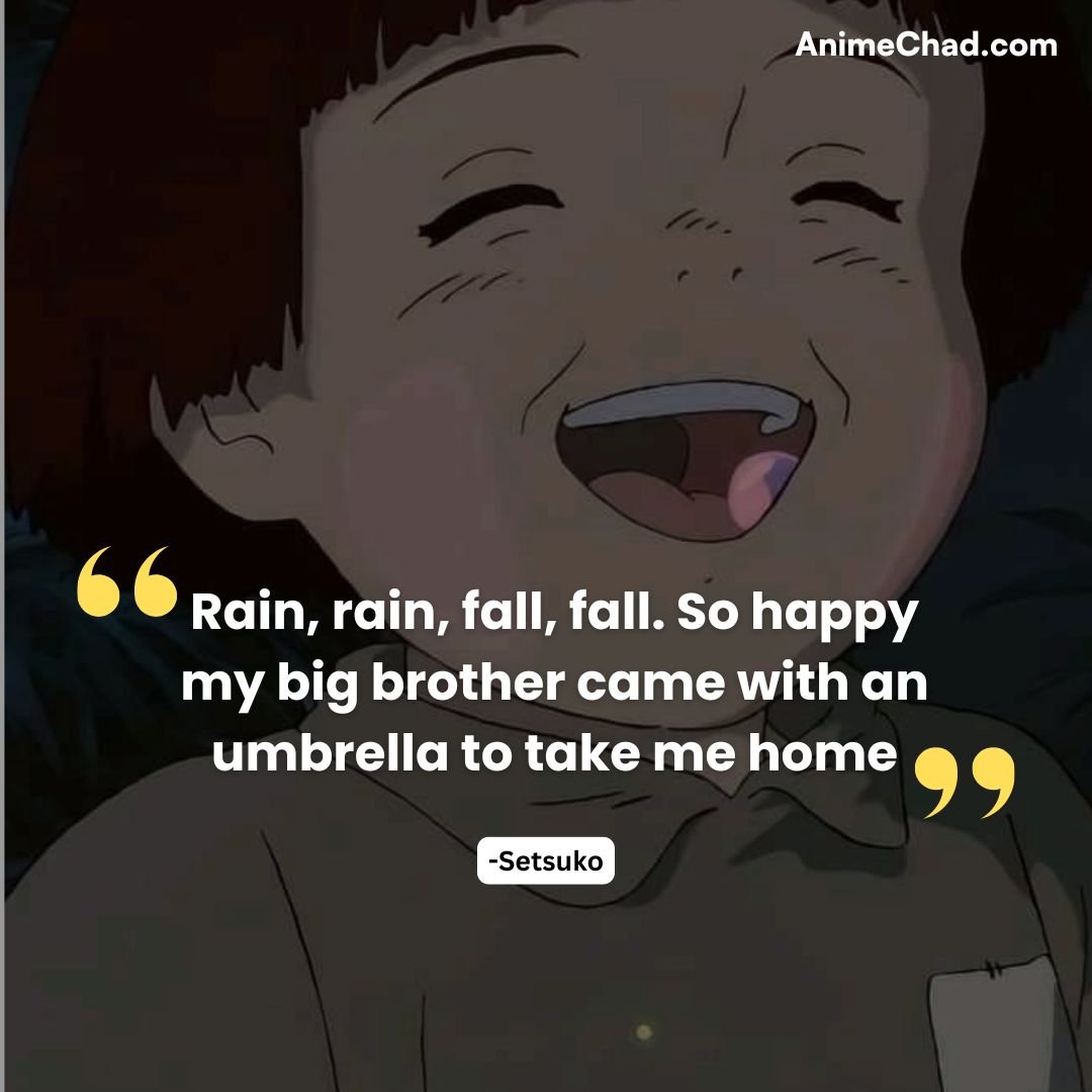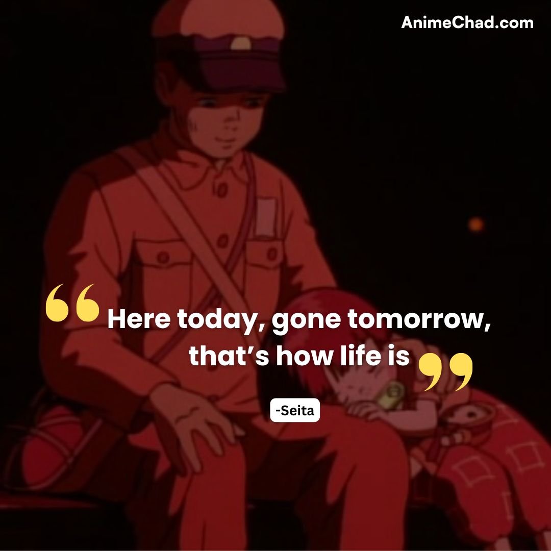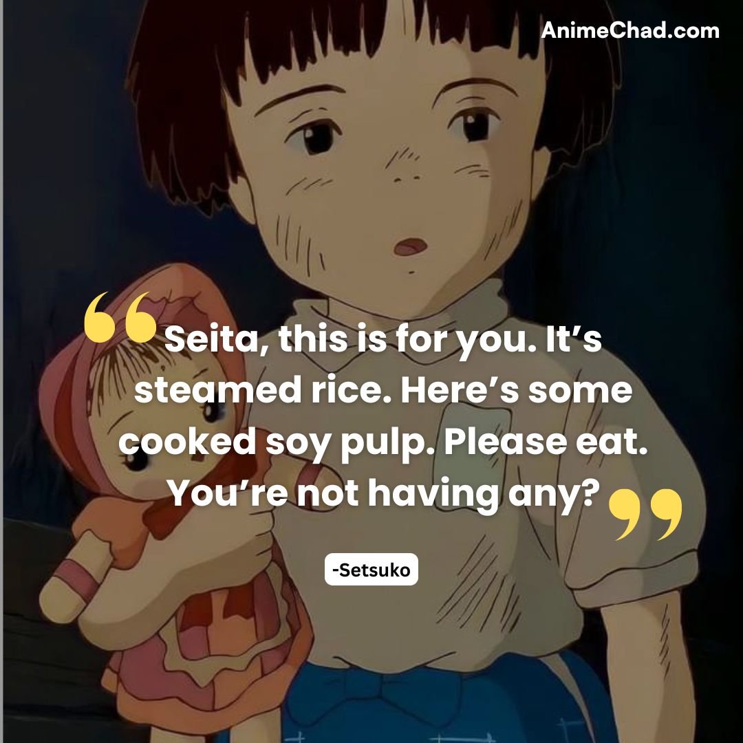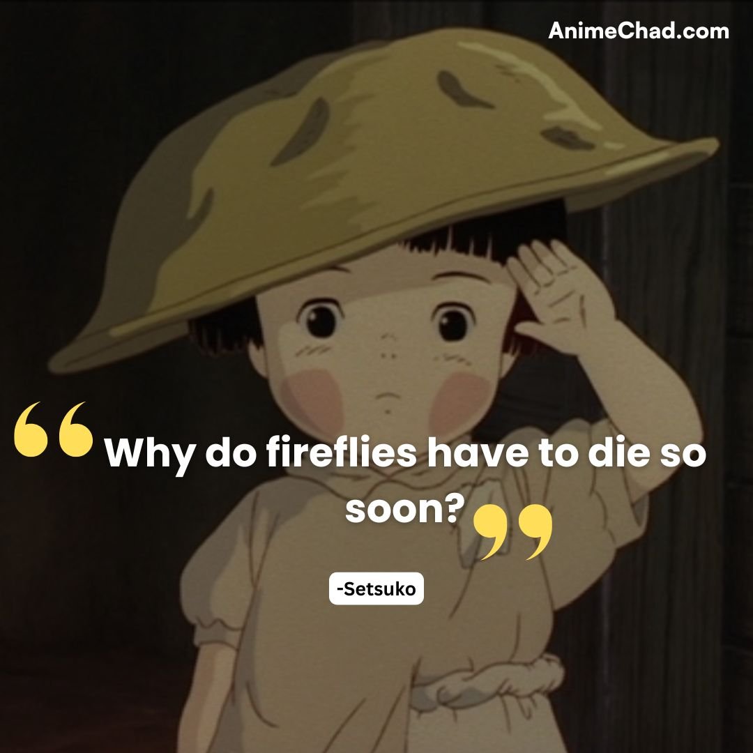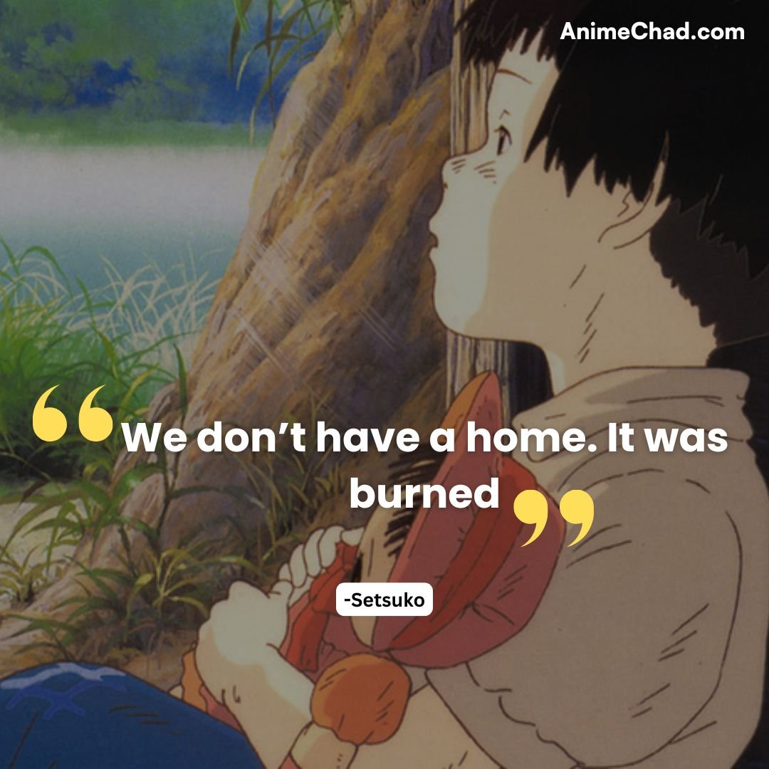 These quotes capture the heartache, fleeting joys, and enduring love at the center of Grave of the Fireflies, reflecting on the human cost of war and the resilience of the spirit.