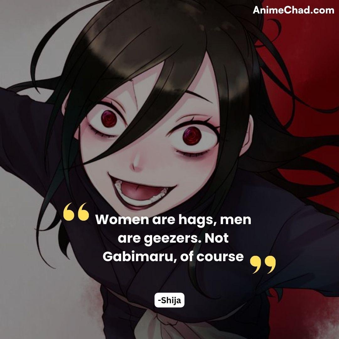 Context: Shija’s dark humor, highlighting Gabimaru’s inhuman resilience.