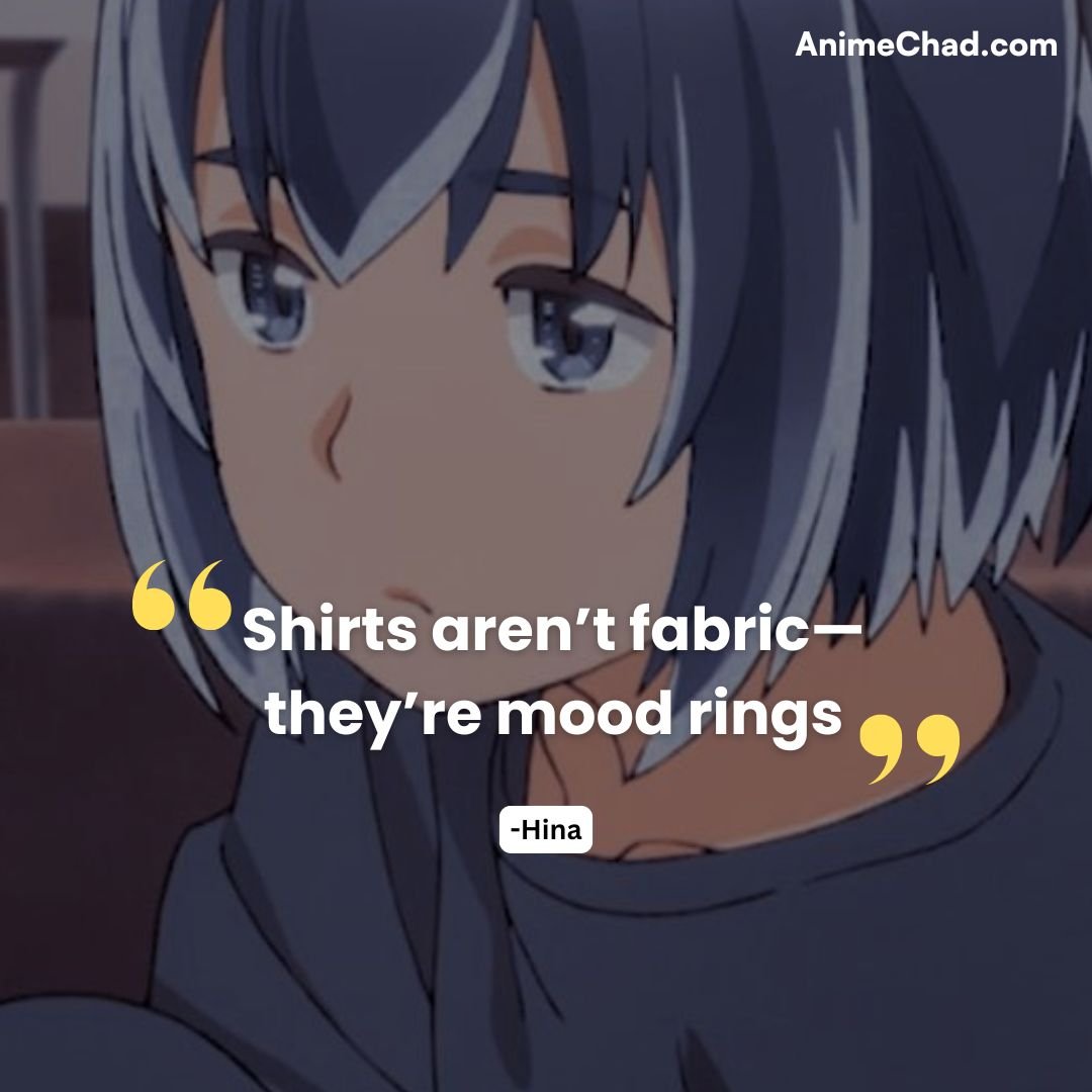 Hina’s slogan-changing shirts humorously externalize her minimal character growth.