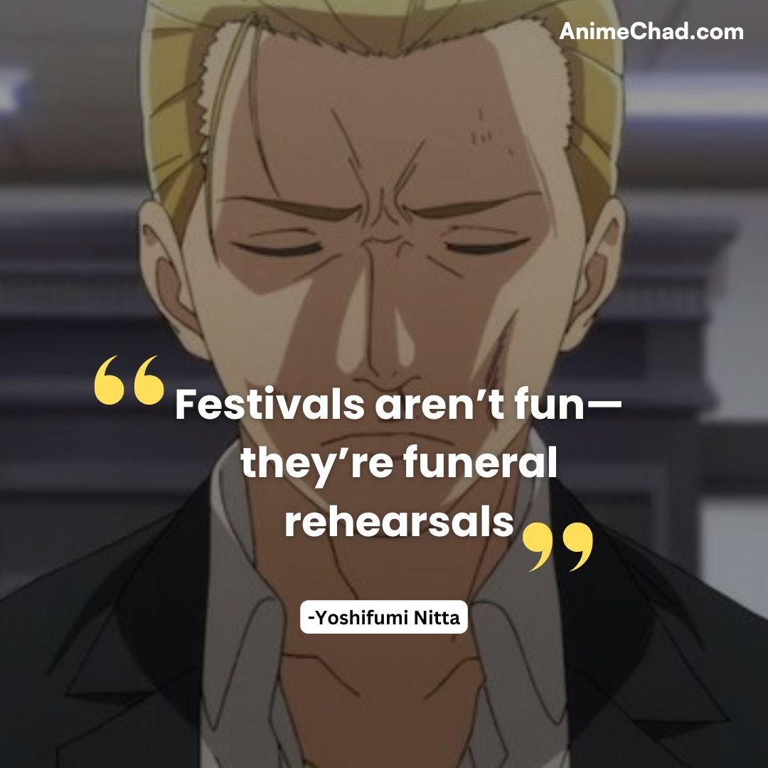 Nitta’s morbid celebration of his promotion encapsulates his comedic pessimism.