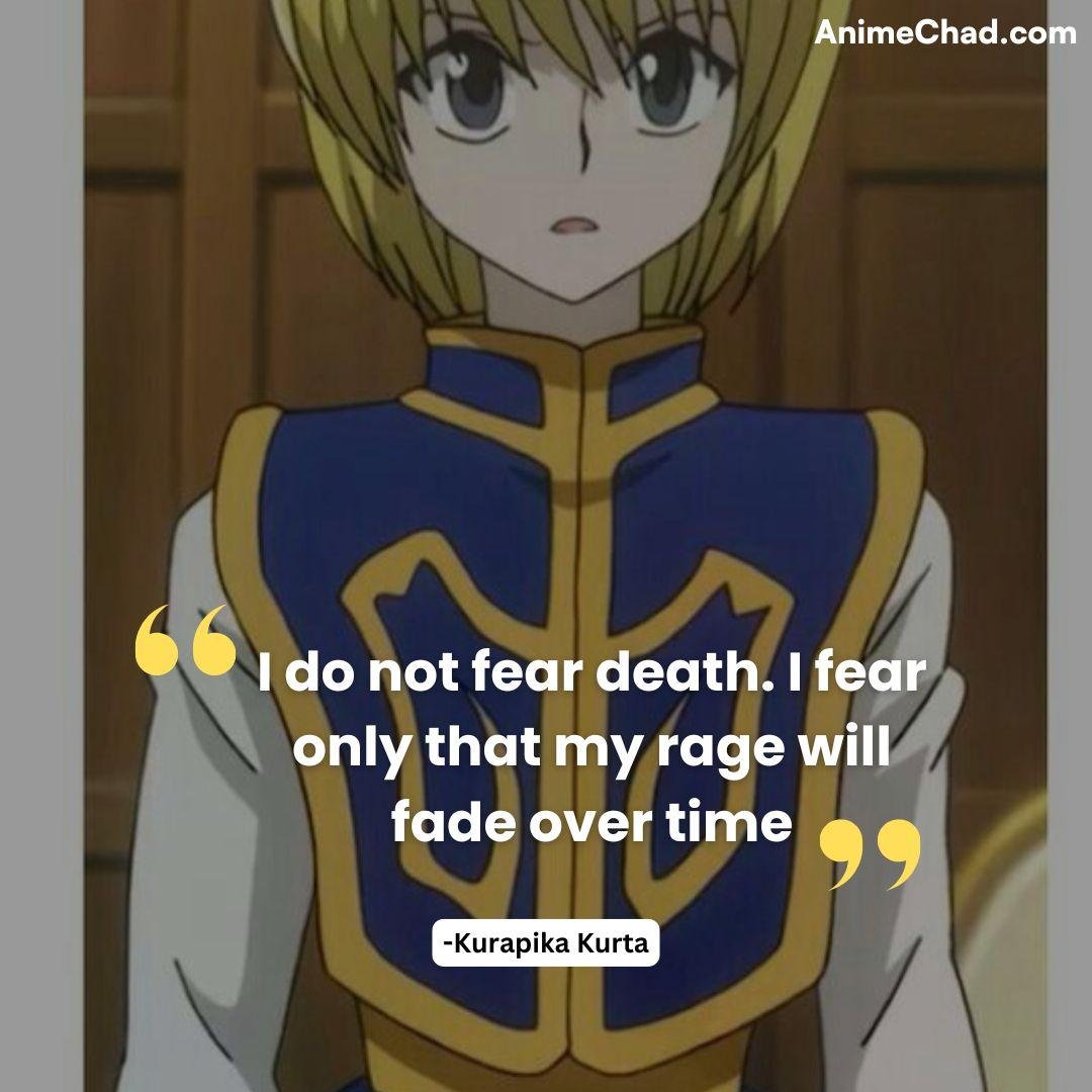I do not fear death. I fear only that my rage will fade over time