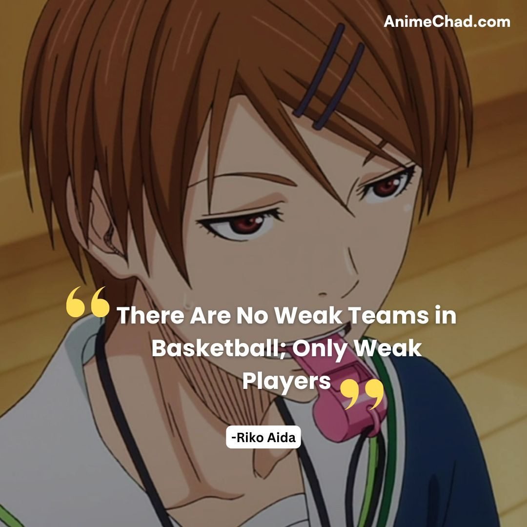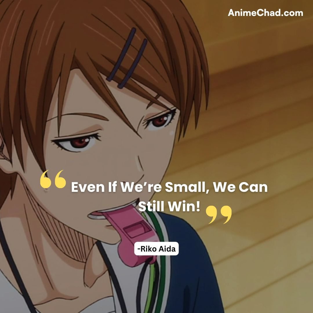 [Context]: Riko motivates Seirin by emphasizing strategy and teamwork over physical dominance, reinforcing the underdog theme of the series.