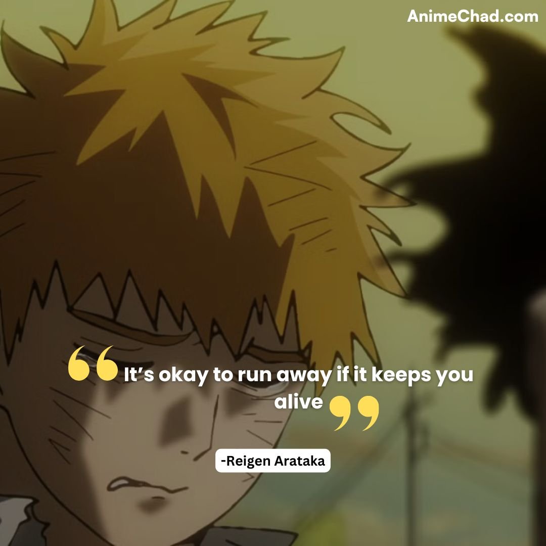 A pragmatic lesson from Reigen that contrasts with traditional heroism but aligns with the series’ realistic approach to conflict.