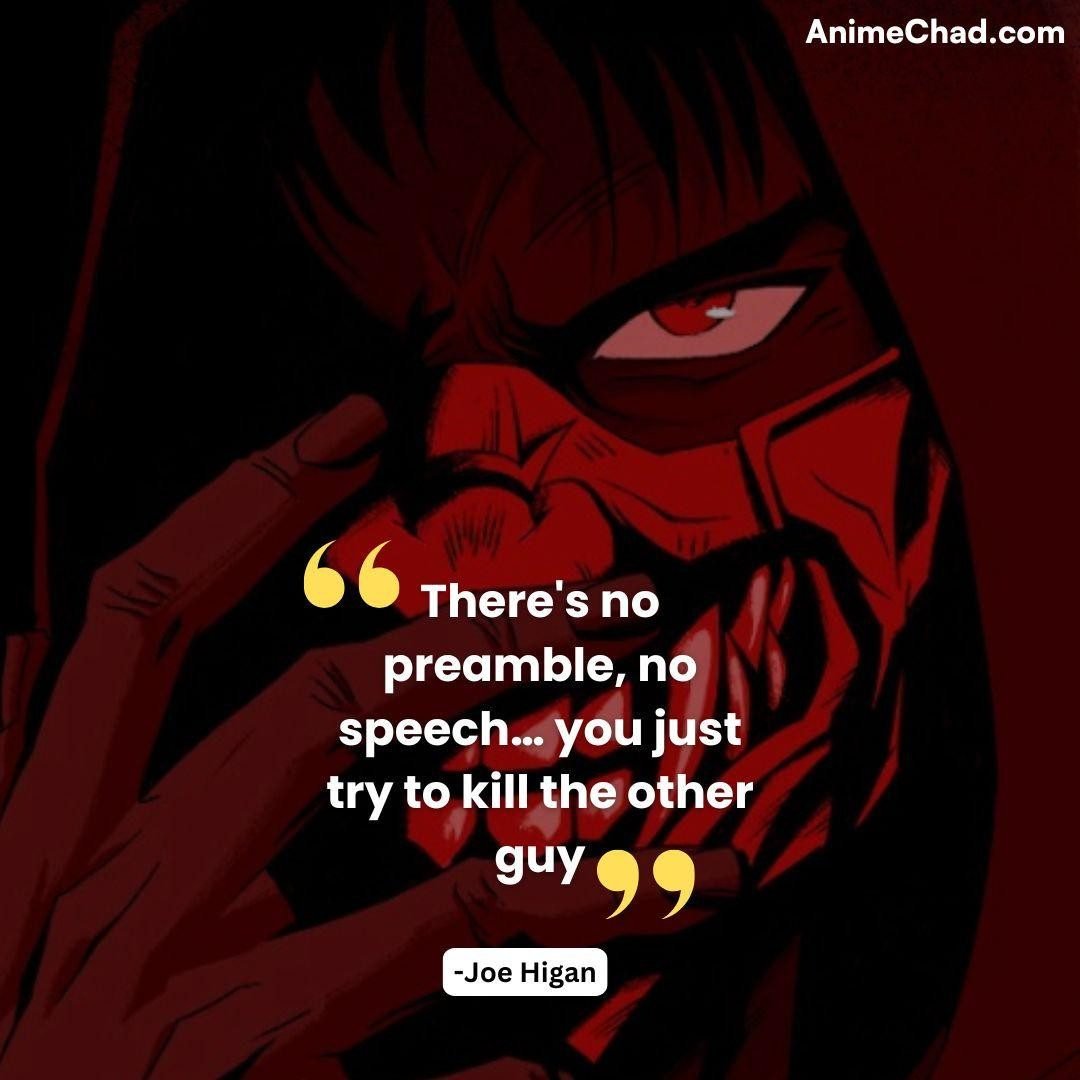 Higan’s chilling vow during the Boss Ninja’s torture, showcasing his descent into ruthless vengeance.