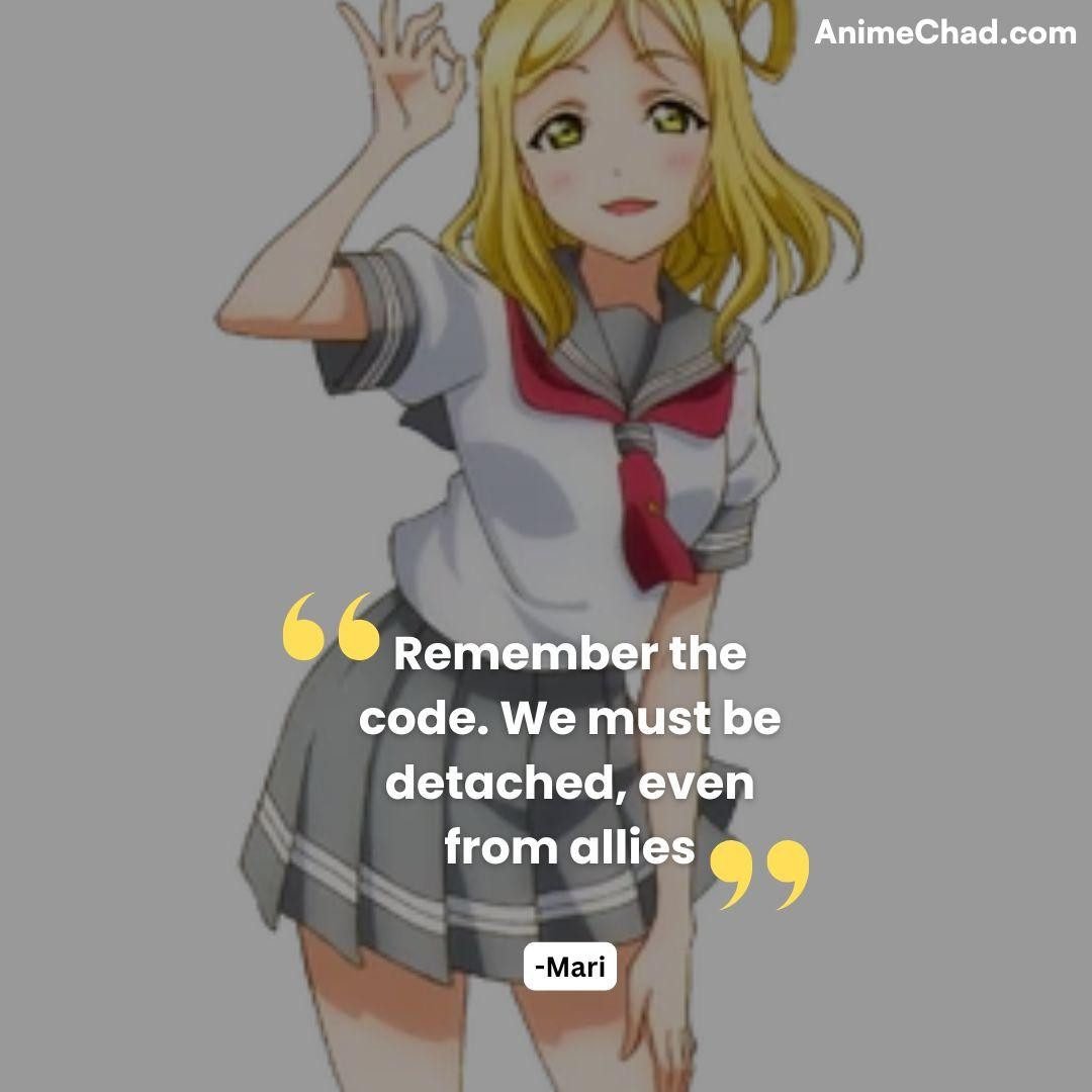 Mari’s adherence to the code contrasts with her bond with Higan, humanizing their rebellion.
