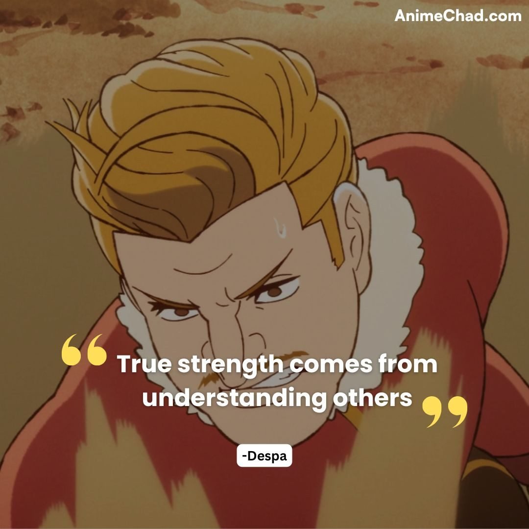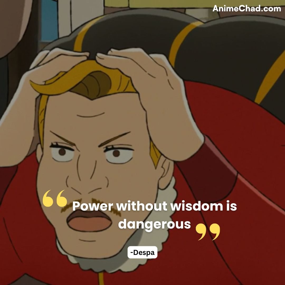 Despa’s wisdom underscores the characters’ internal struggles and personal growth throughout their journey.