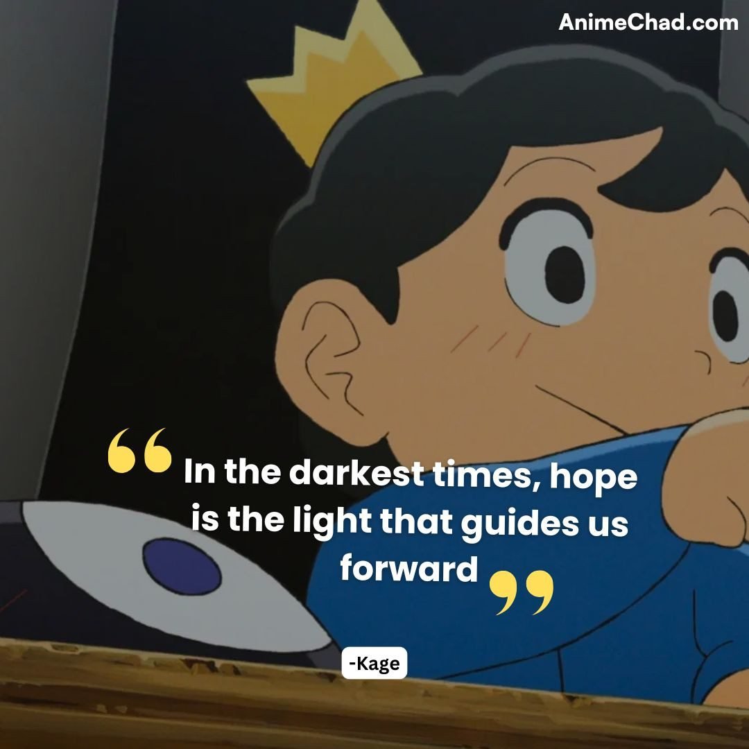 Kage’s optimism reflects the series’ overall message of perseverance and hope.