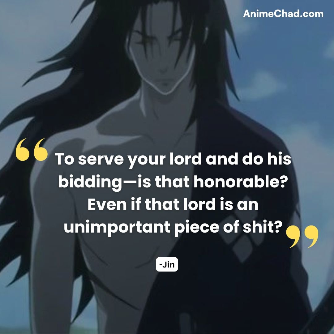 Jin’s disdain for blind loyalty deconstructs traditional samurai values.