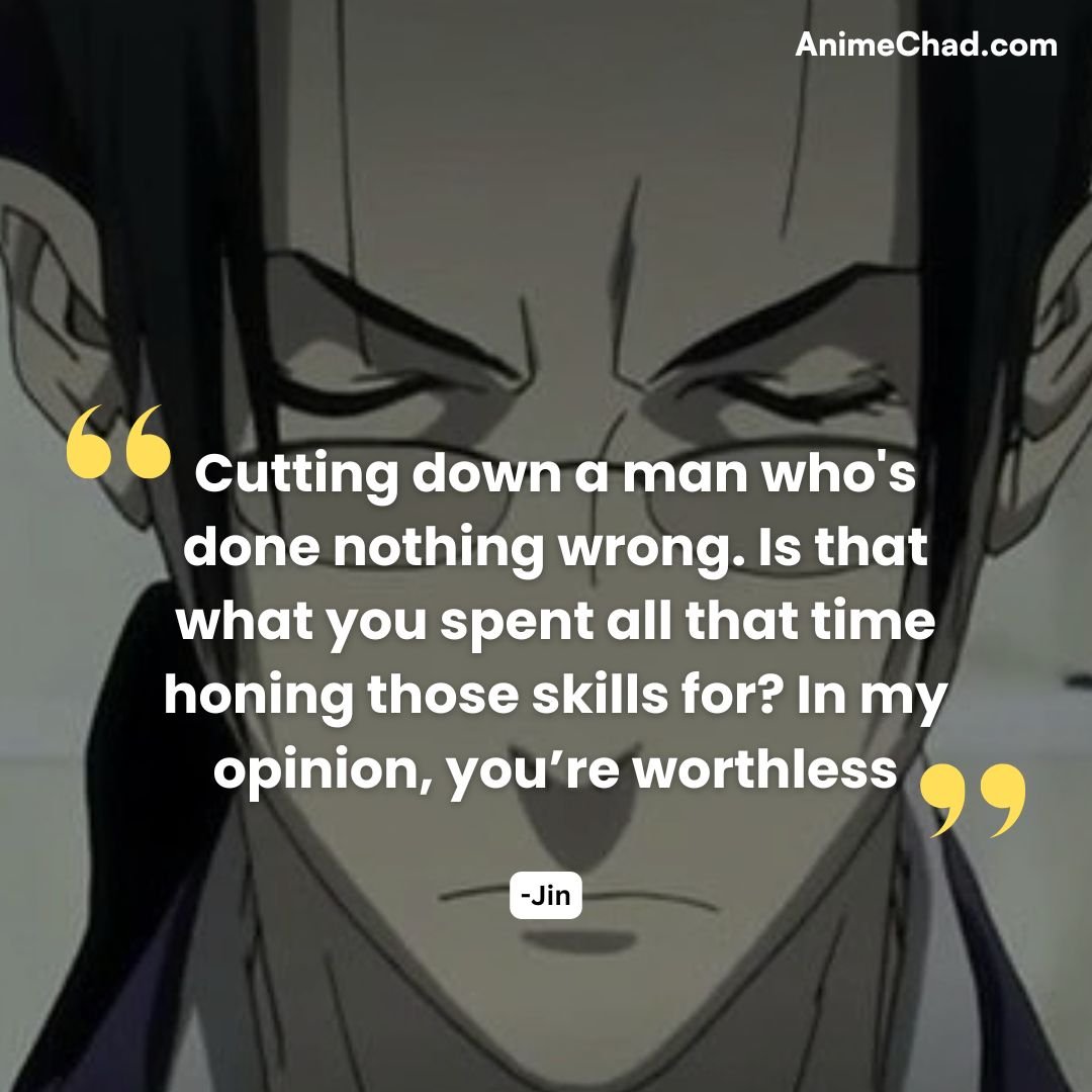 Jin’s advice to Mugen mirrors his own acceptance of life’s unpredictability.