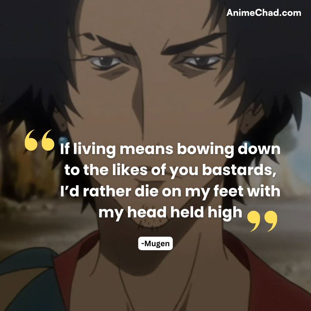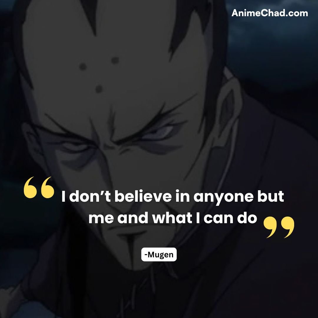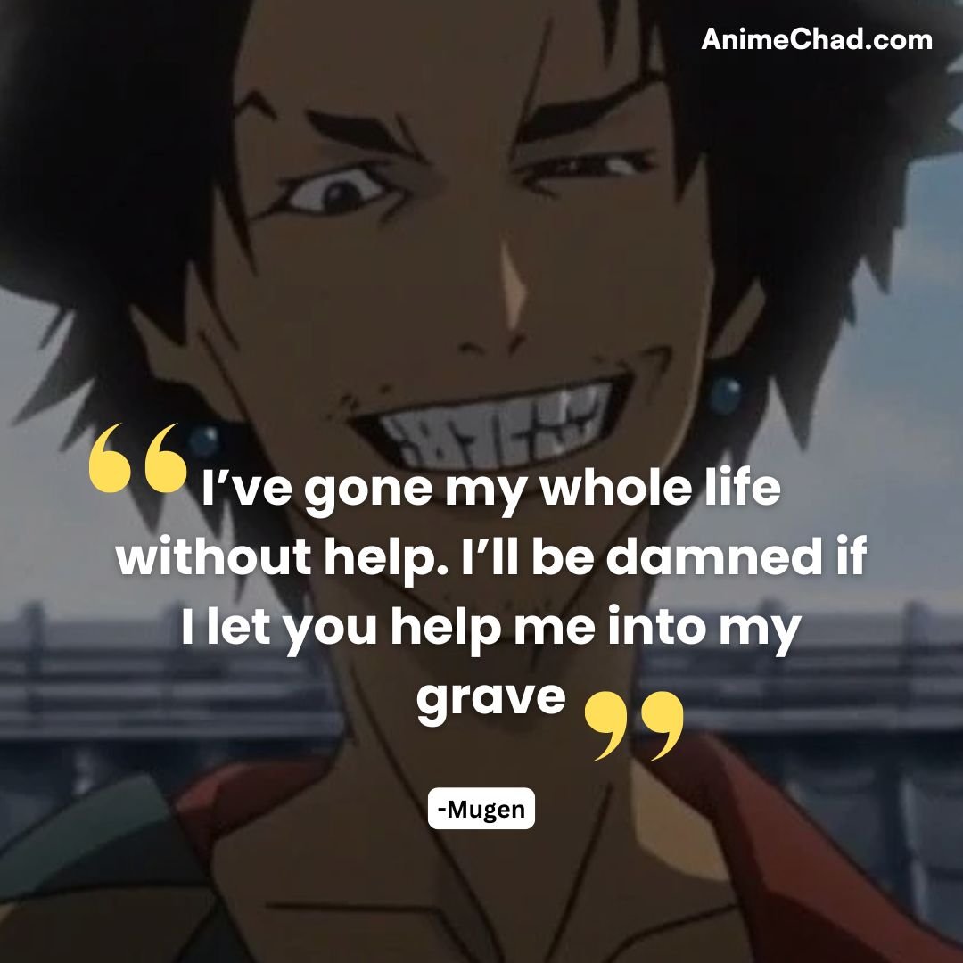 A recurring mantra underscoring Mugen’s journey from lone wolf to reluctant ally.