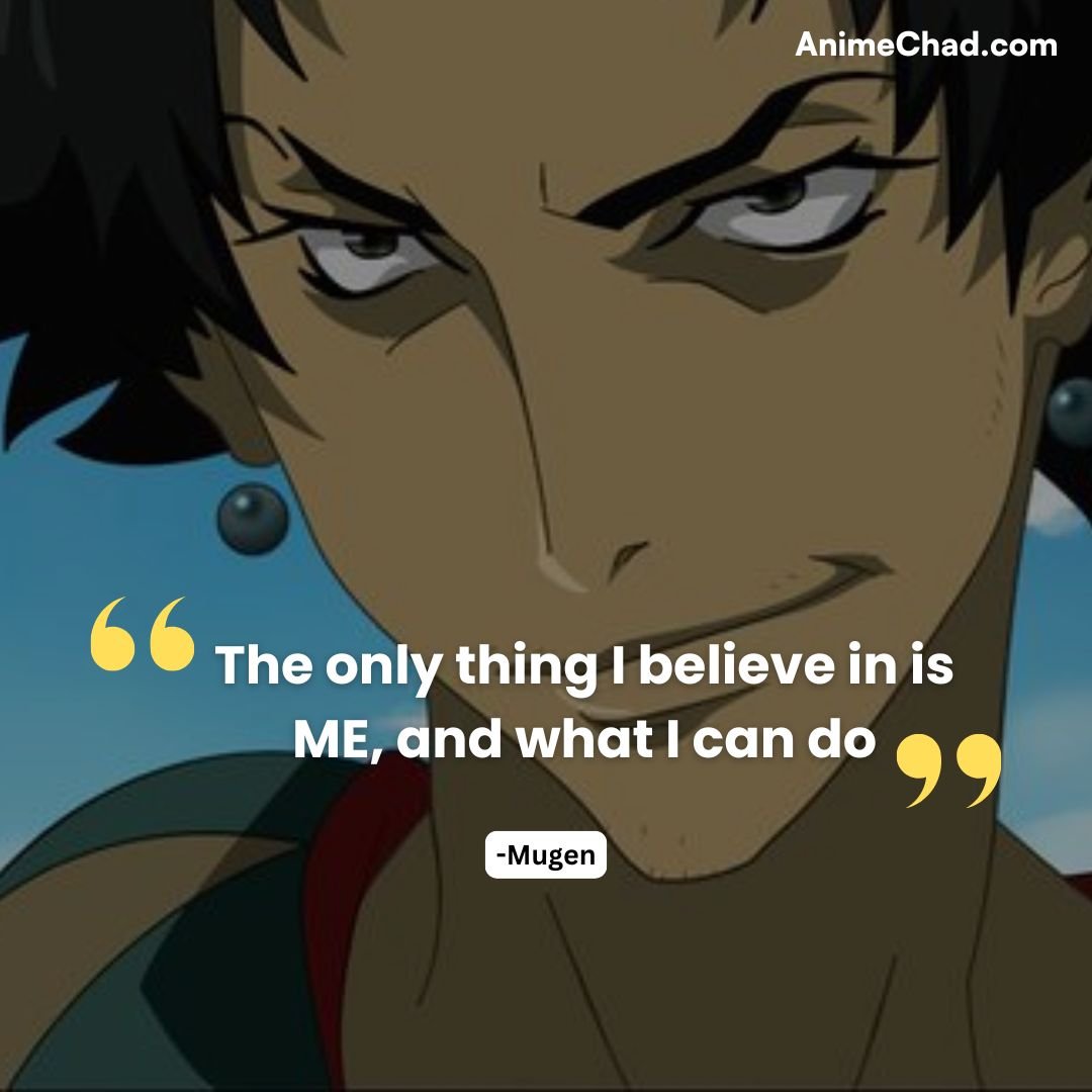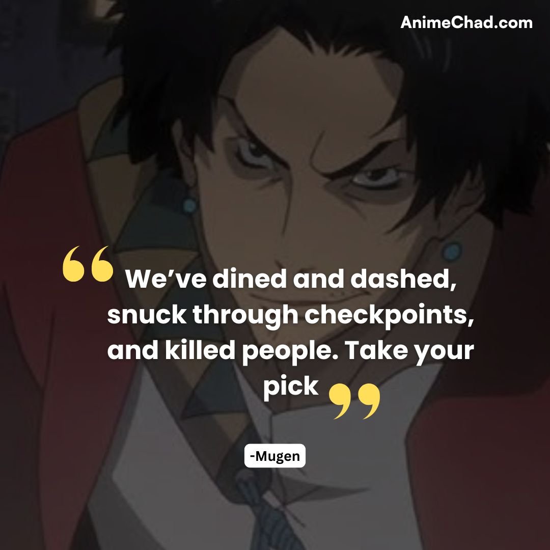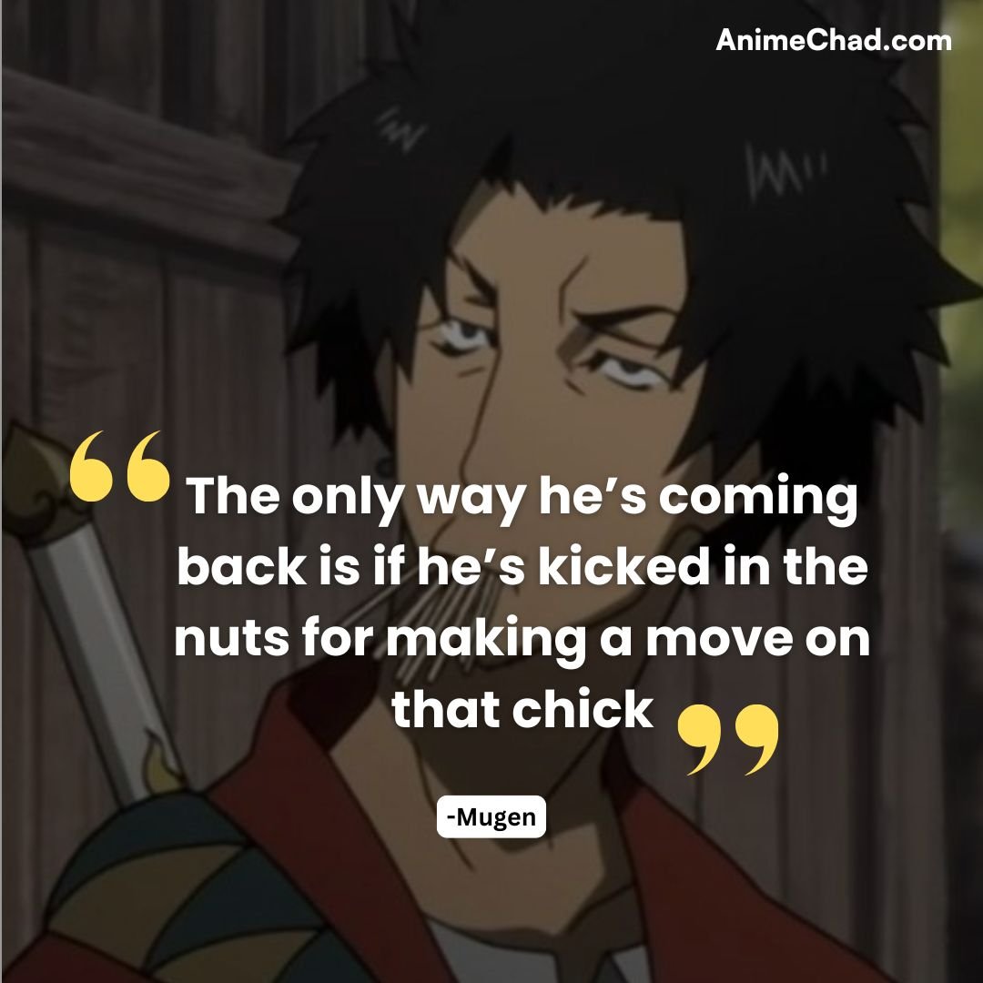 Mugen’s irreverent humor lightens the series’ darker themes.
