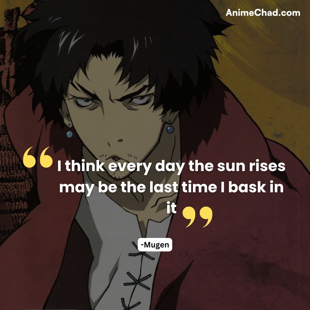 Mugen’s existential reflection highlights his embrace of life’s fragility.