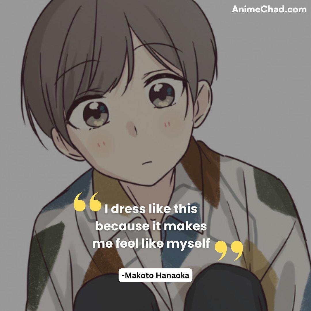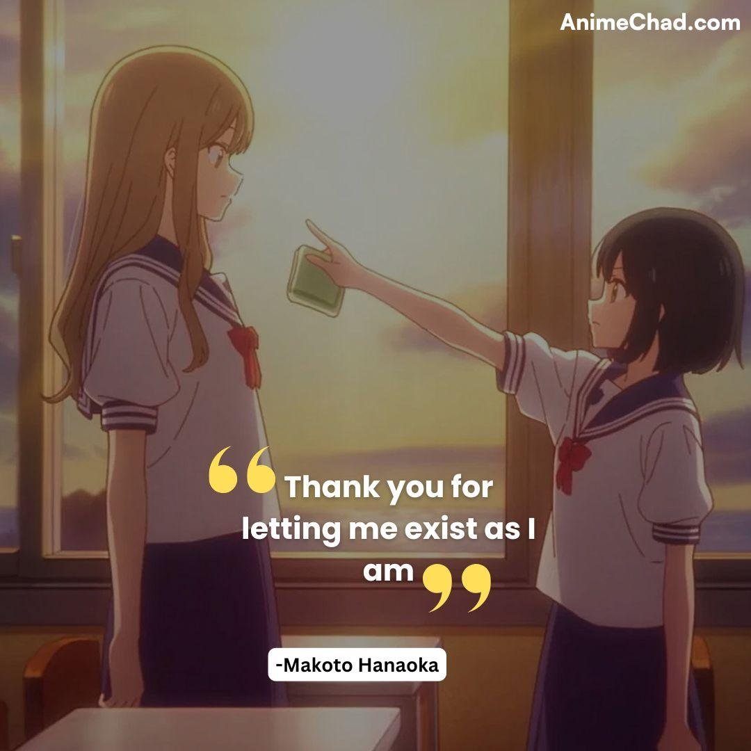 Makoto’s self-reflection normalizes individuality, framing the series’ celebration of nonconformity.