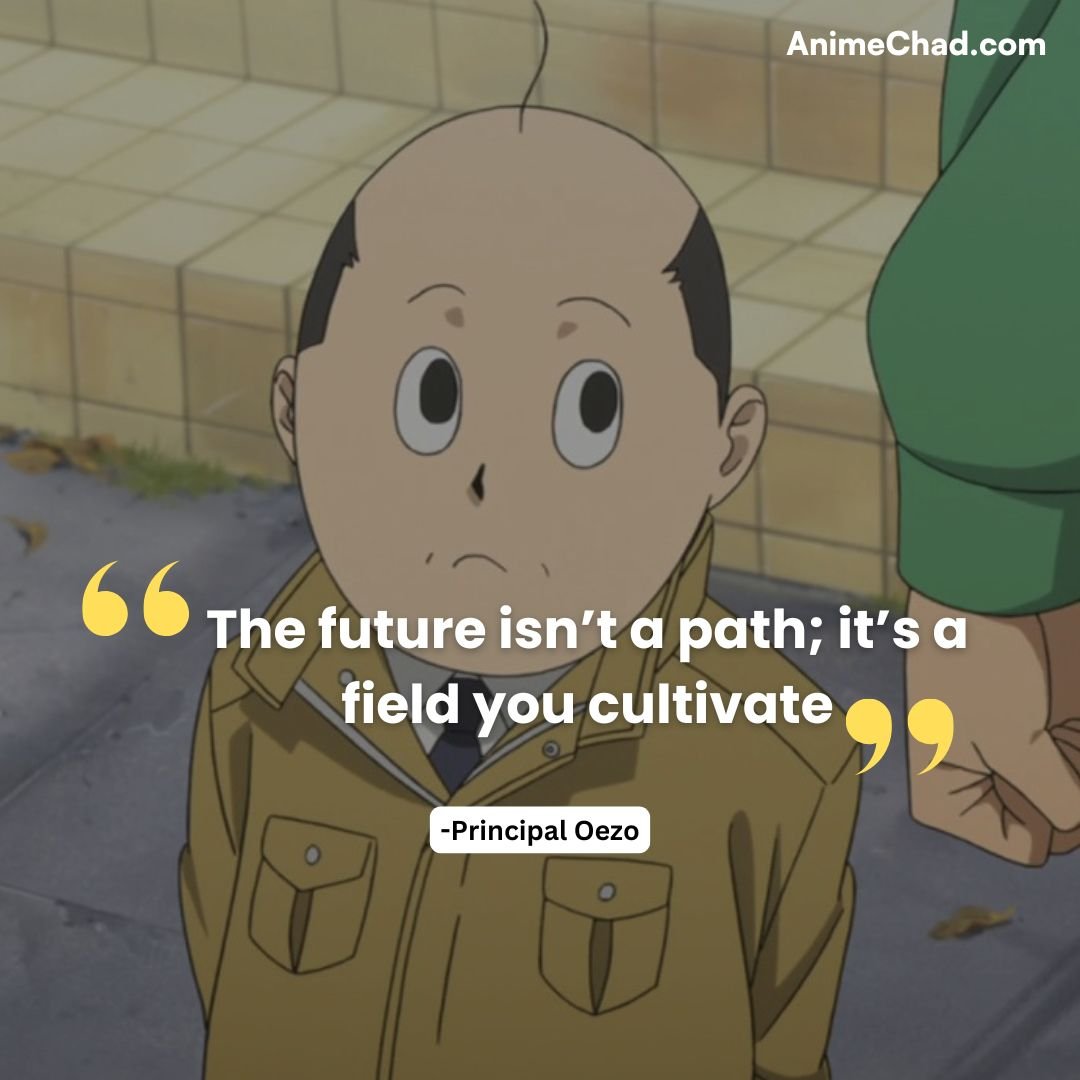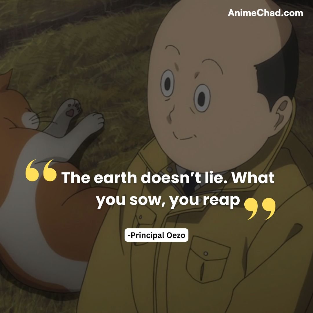 The principal’s agricultural wisdom, mirroring the series’ themes of accountability and effort.