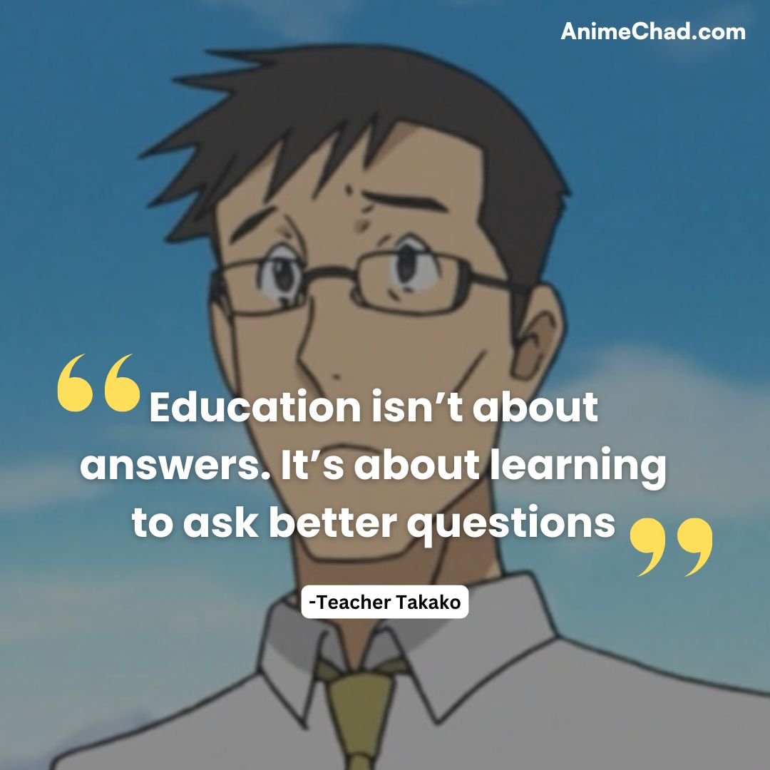 Takako’s teaching philosophy, challenging Hachiken’s rigid academic mindset.
