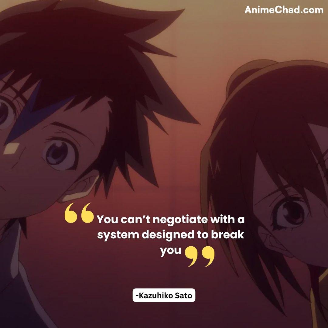 Kazuhiko’s nihilistic warning during a lull in the killing game.