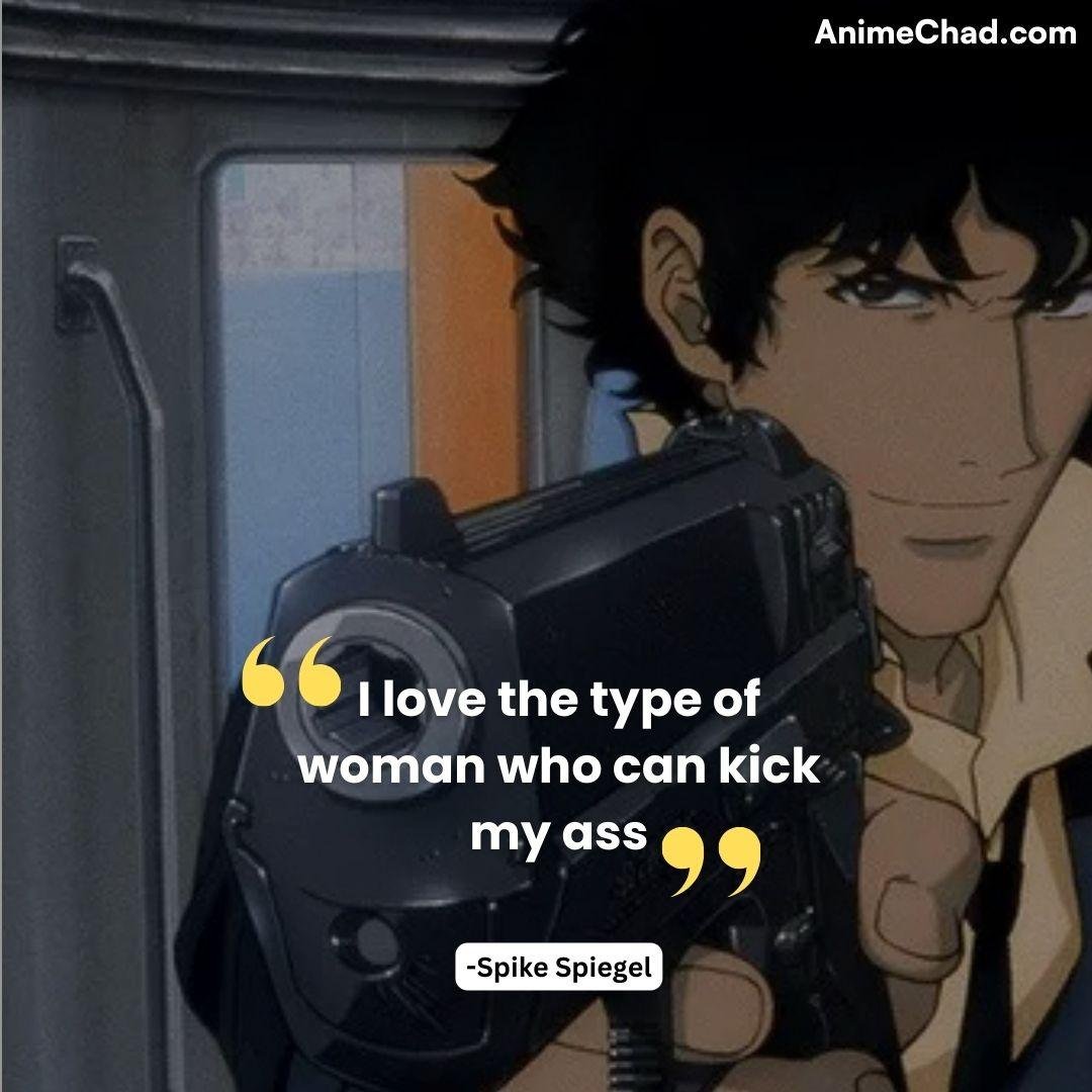 Context: Spike’s flirtatious wit, revealing his attraction to strength and unpredictability.
