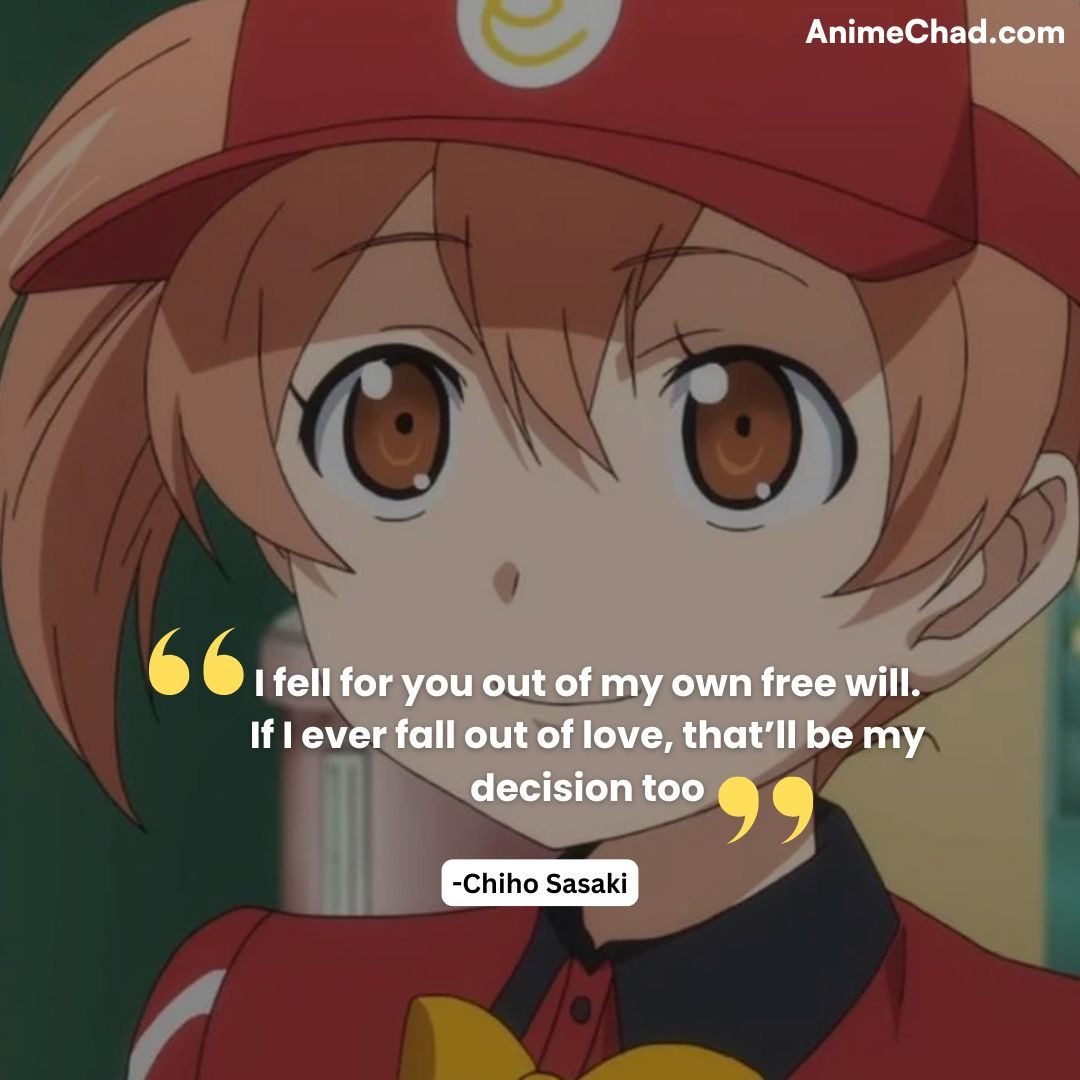 Context: Chiho expresses her independence and emotional strength in her feelings for Maou.