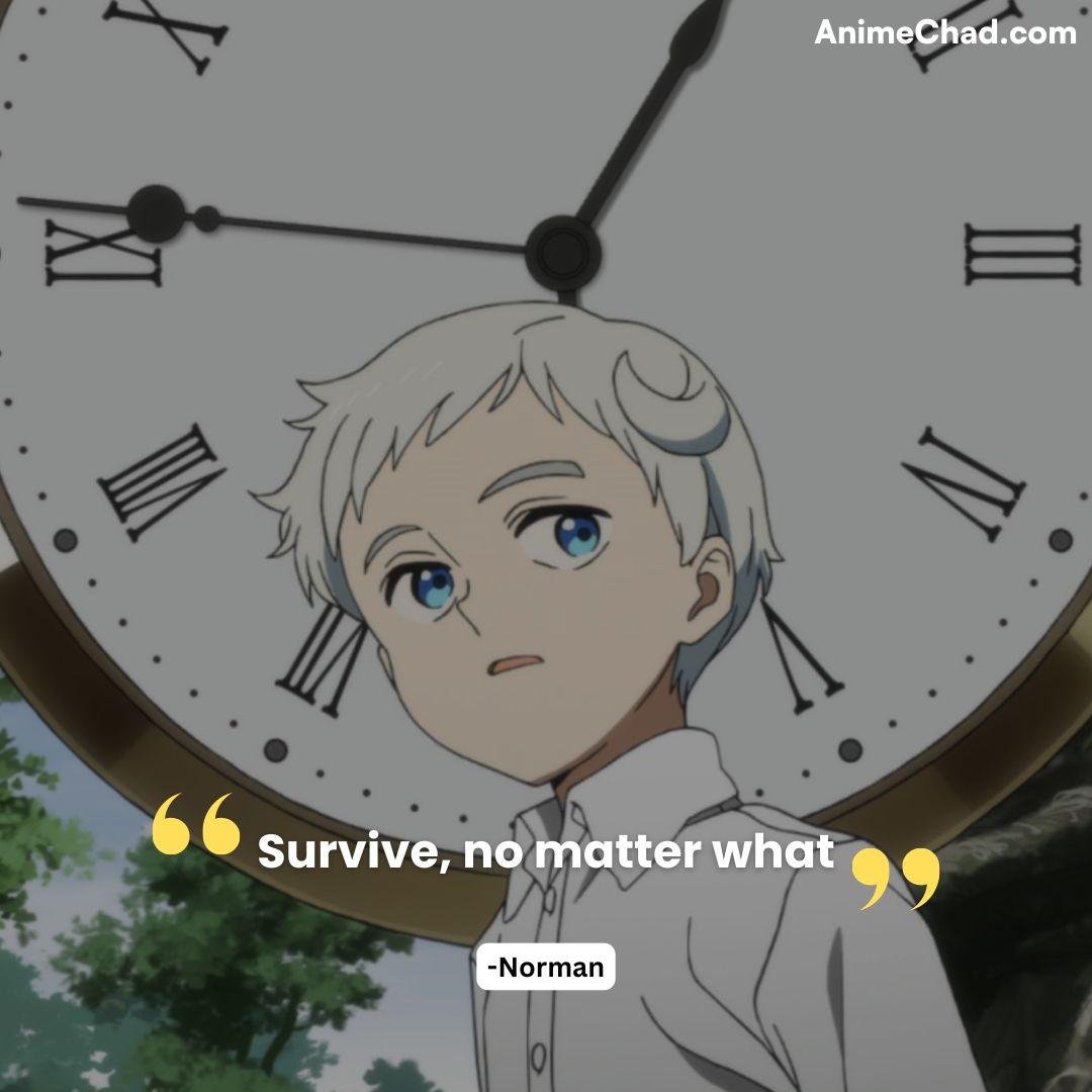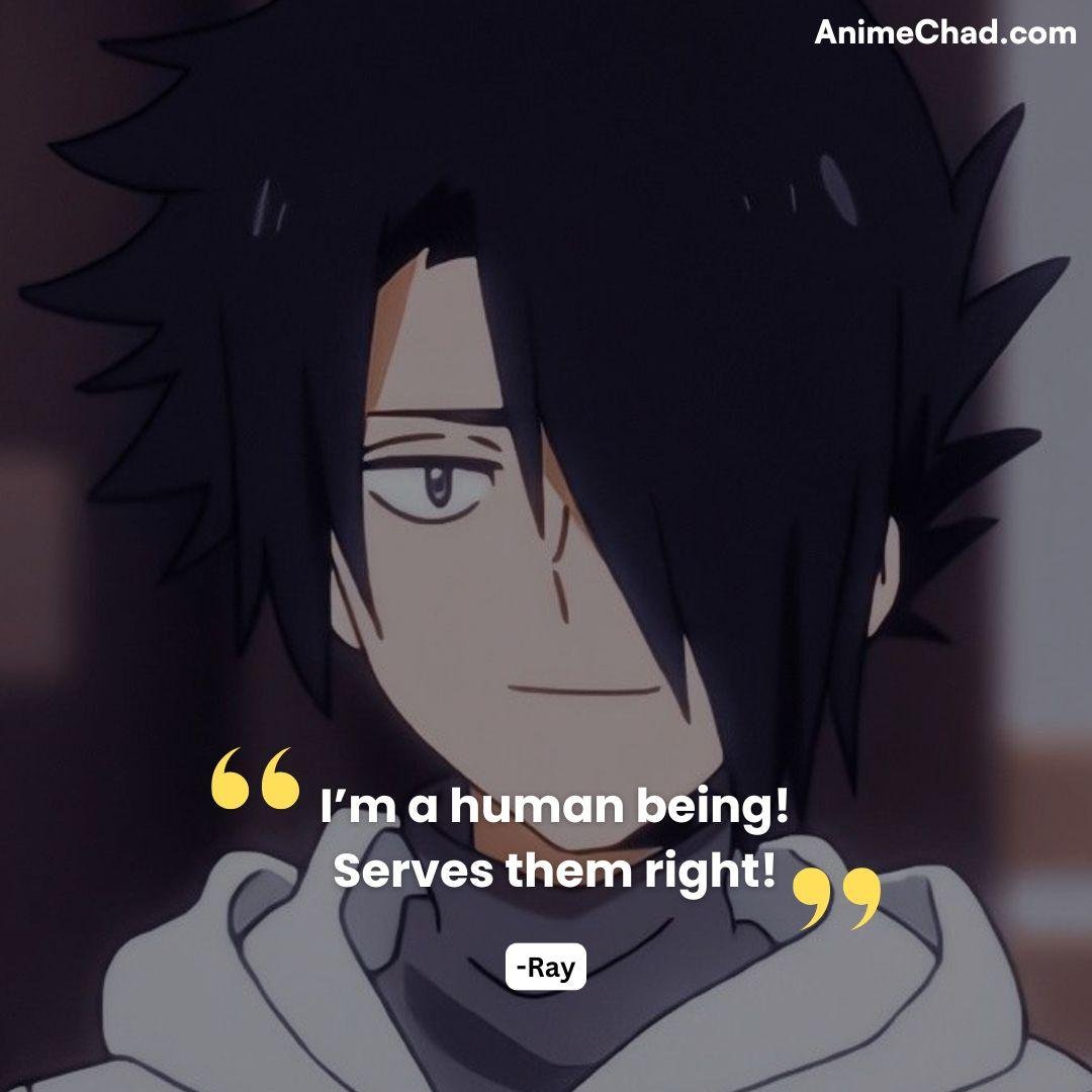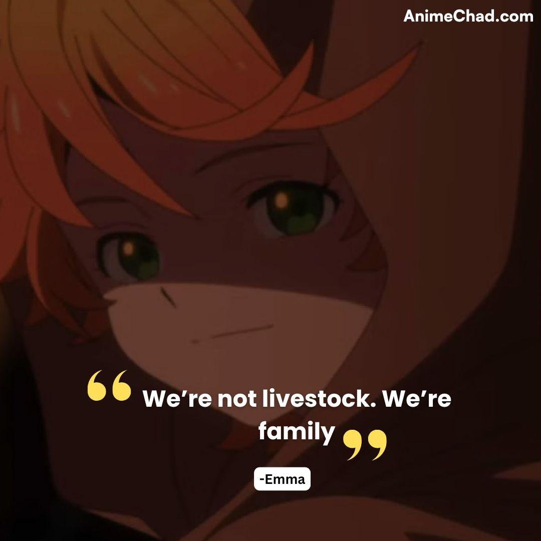Defiant rejection of his “livestock” status during Grace Field escape, reclaiming autonomy.