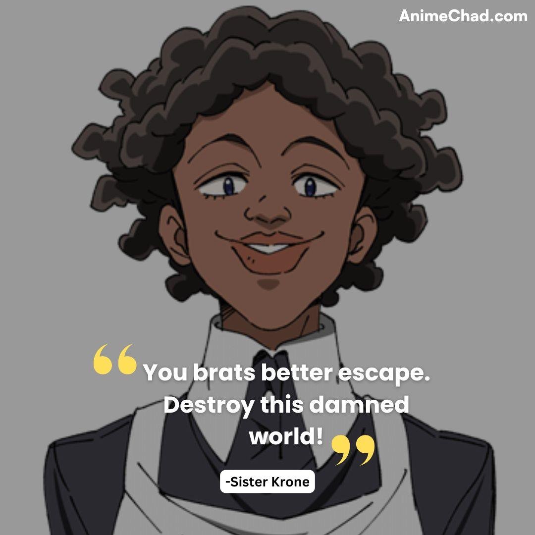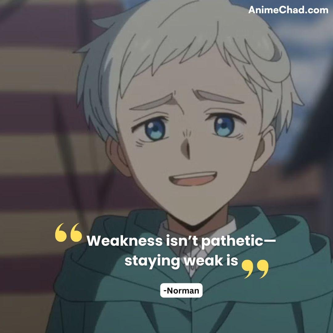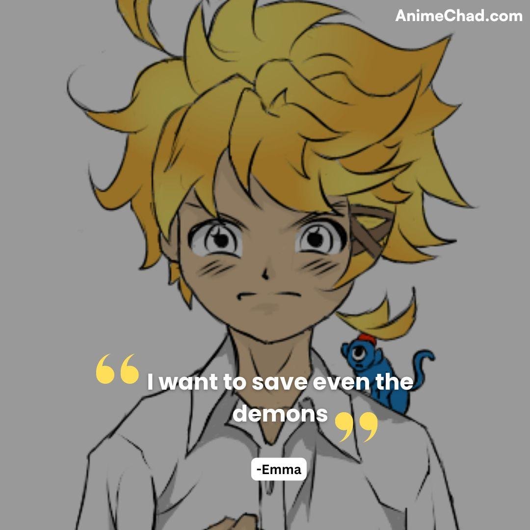 Defiant rejection of his “livestock” status during Grace Field escape, reclaiming autonomy.