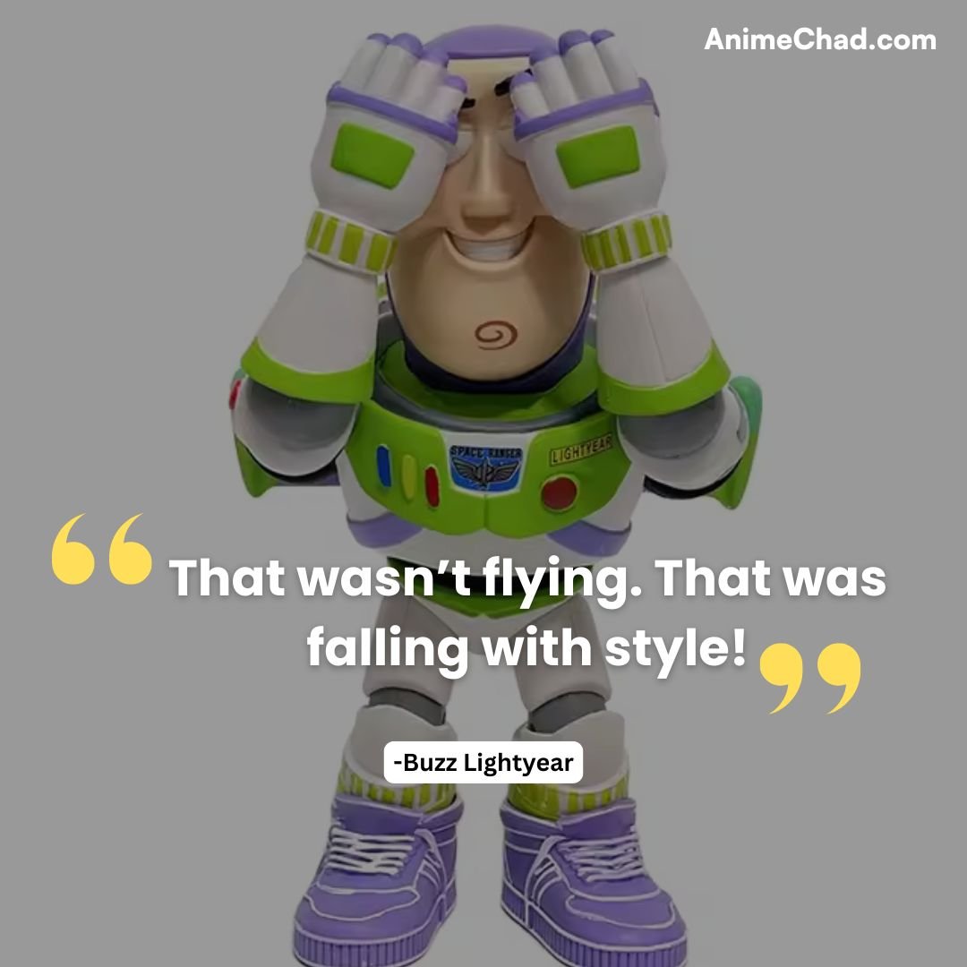 Context: Buzz’s delusional catchphrase symbolizes his initial refusal to accept his toy identity.