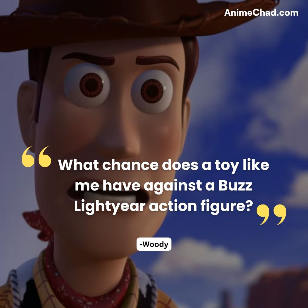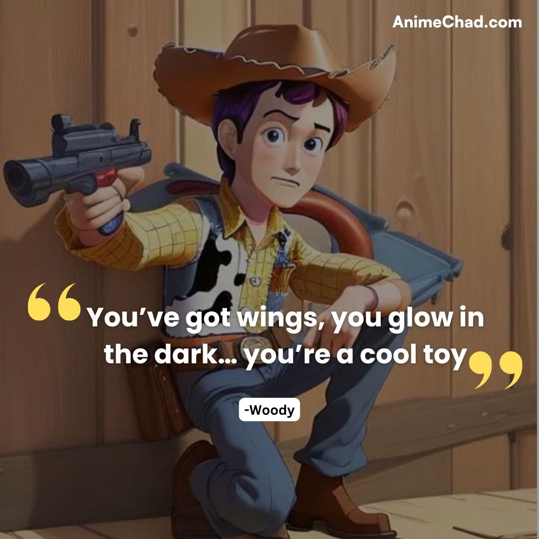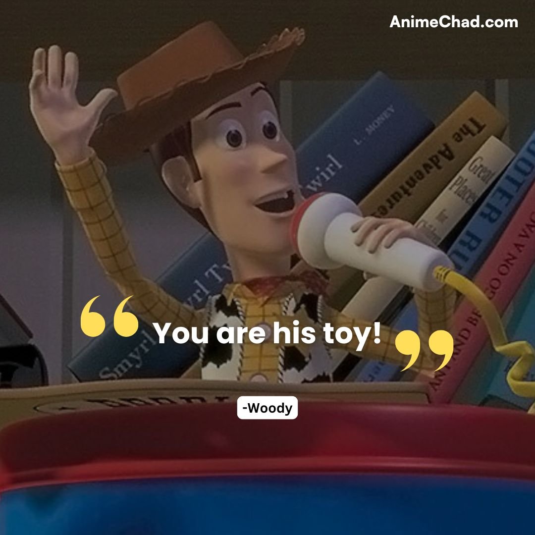 Context: Highlights Woody’s manufactured persona as a cowboy toy, contrasting with his complex emotions.