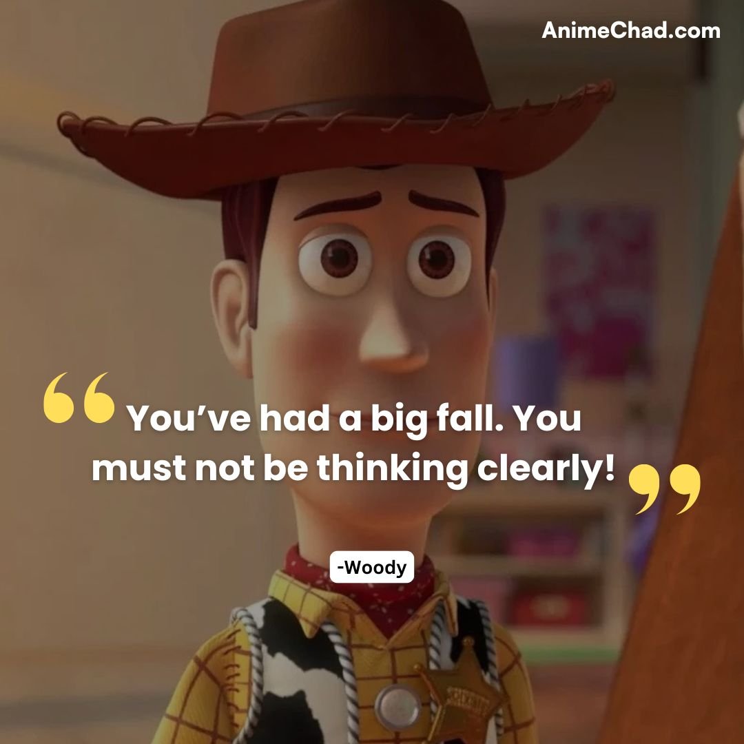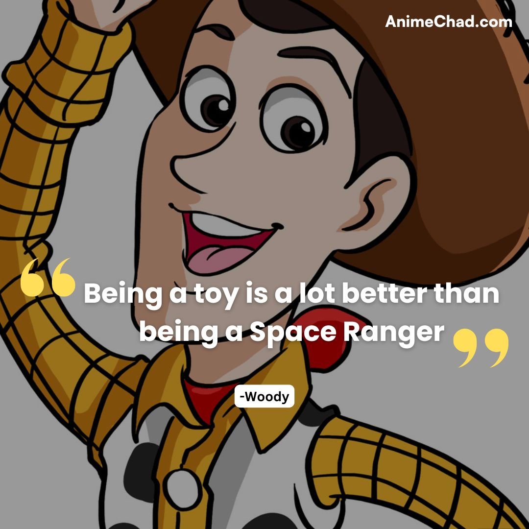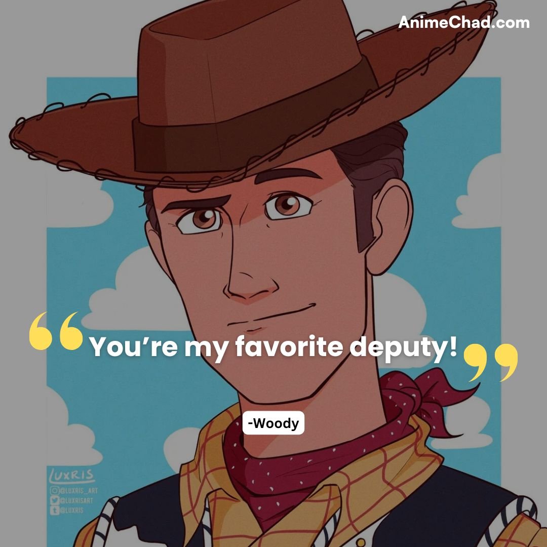 Context: Highlights Woody’s manufactured persona as a cowboy toy, contrasting with his complex emotions.